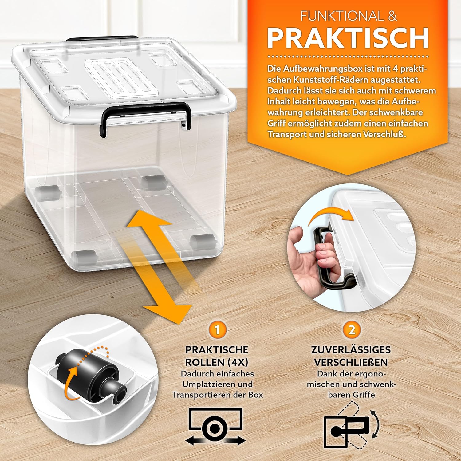 • ROLBAAR, stapelbaar en stevig gesloten: transparante tillvex kunststof dozen met stevige sluitclips bieden niet alleen flexibiliteit, maar ook stabiliteit bij het stapelen dankzij geïntegreerde uitsparingen voor de rollen. Ideaal voor voering, kleding en meer, ze zijn gemaakt van hoogwaardig kunststof. De opbergdozen zijn geschikt voor levensmiddelen, BPA-vrij en gemakkelijk te reinigen. Het gebruik van 100% nieuw materiaal garandeert voedselveiligheid.