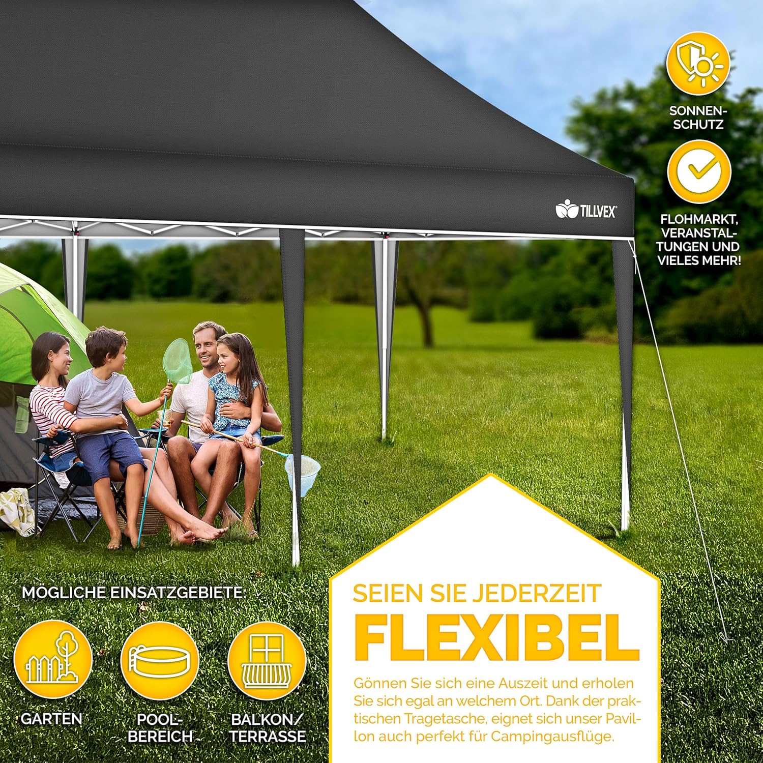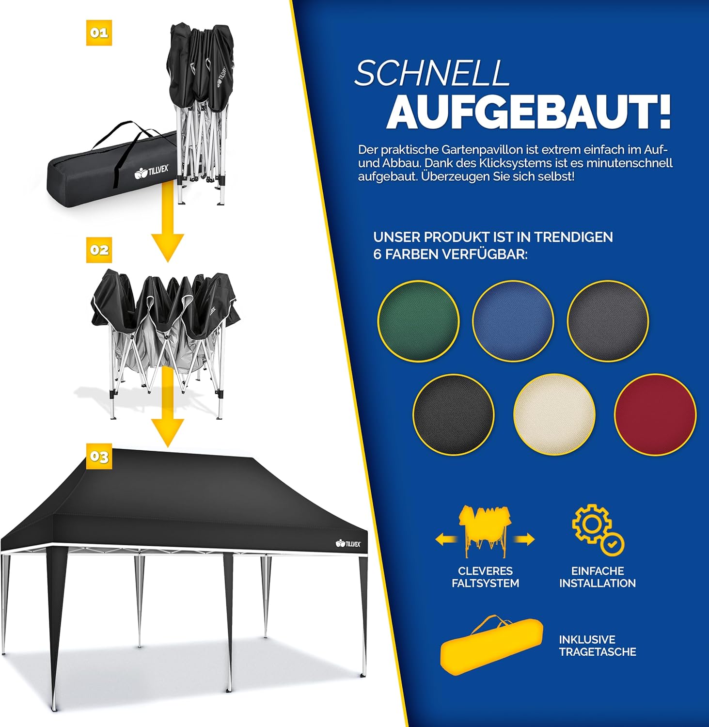 Tillvex Paviljoen, 3 x 6 m, waterdicht, pop-up vouwpaviljoen, in hoogte verstelbaar, tuintent, uv-bescherming 50+, partytent met tas voor tuin