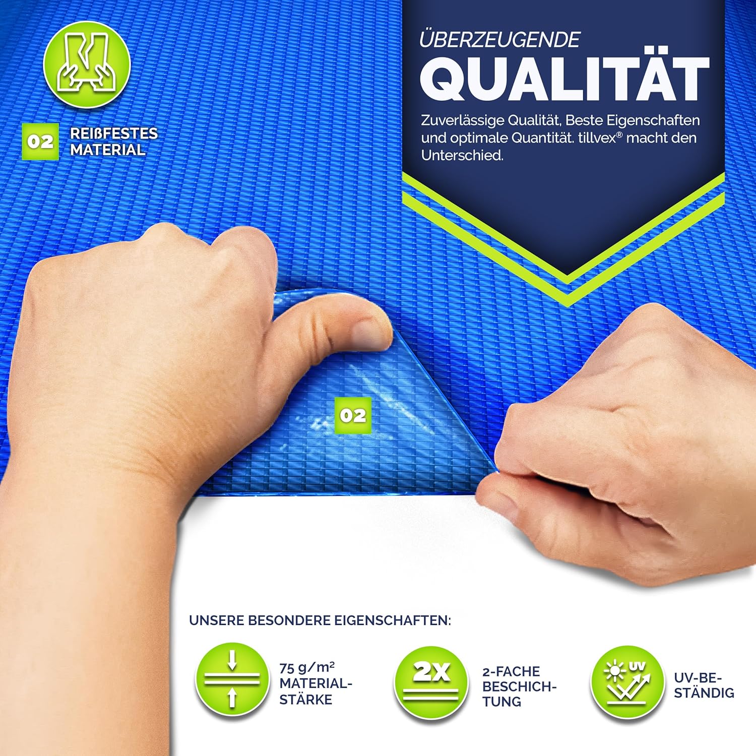 Bescherm je zwembad: het grondzeil van tillvex beschermt je zwembad tegen bacteriën, schimmel, scheuren en gaten, zodat je zwembad jarenlang hygiënisch perfect blijft. Daarnaast beschermt het zeil de zwembadfolie tegen de ondergrond.