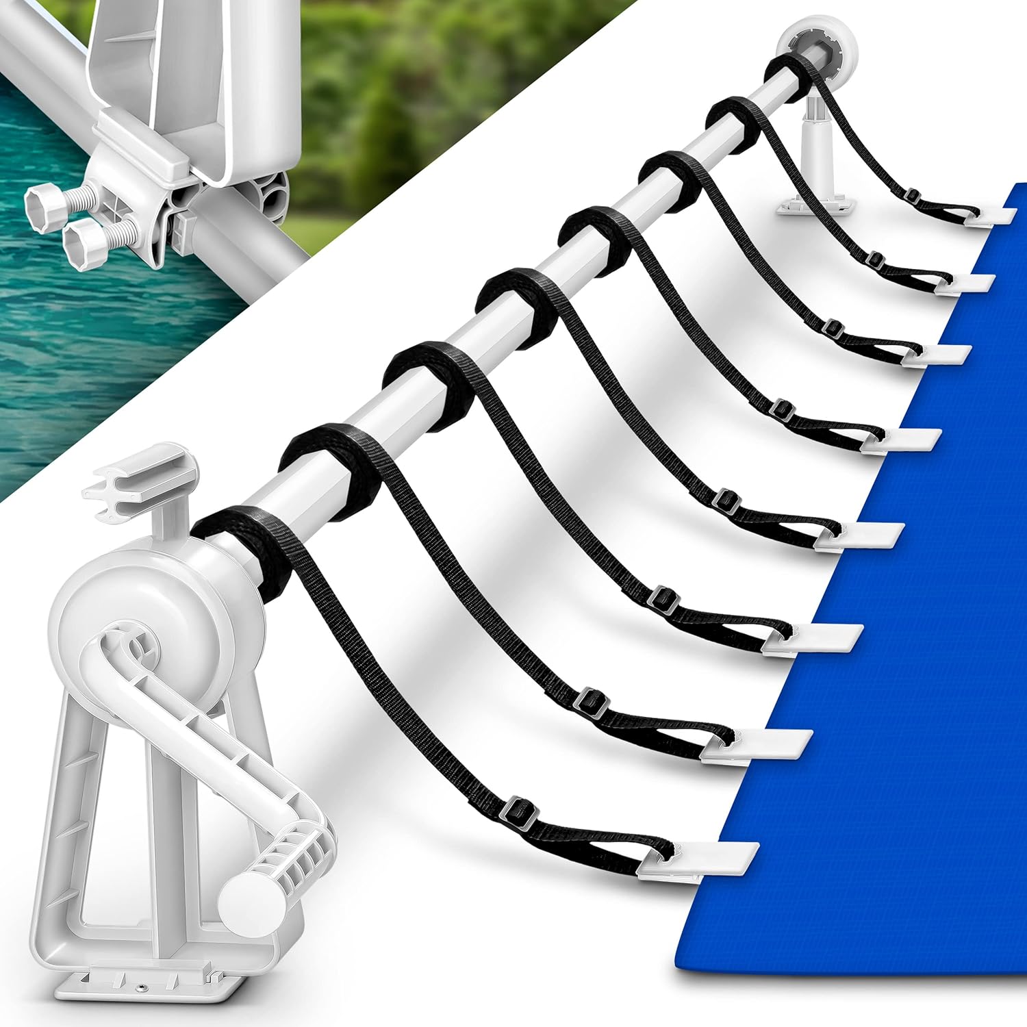 Tillvex Zwembadhaspel 1,05 - 6,15 m, oprolsysteem voor zonnezeil, oprolsysteem voor zwembadzeil en afdekking, inclusief Bandjes