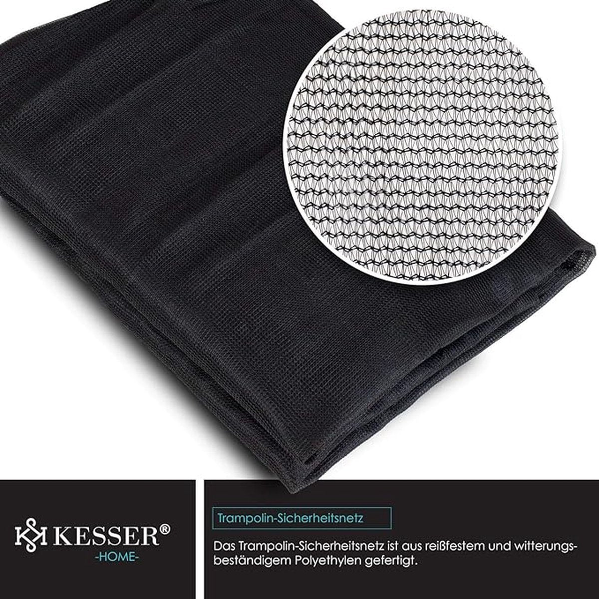 Het net is vervaardigd uit hoogwaardig, dicht geweven polyethyleen dat scheurbestendig, UV-bestendig en weerbestendig is. Met een hoogte van 200 cm biedt het optimale bescherming rondom de trampoline, zodat kinderen met een gerust hart kunnen springen.