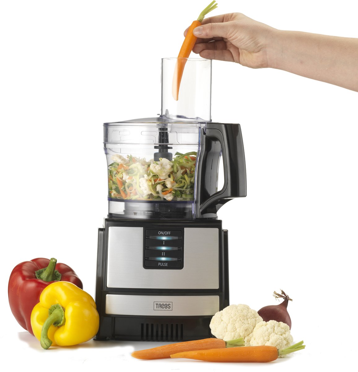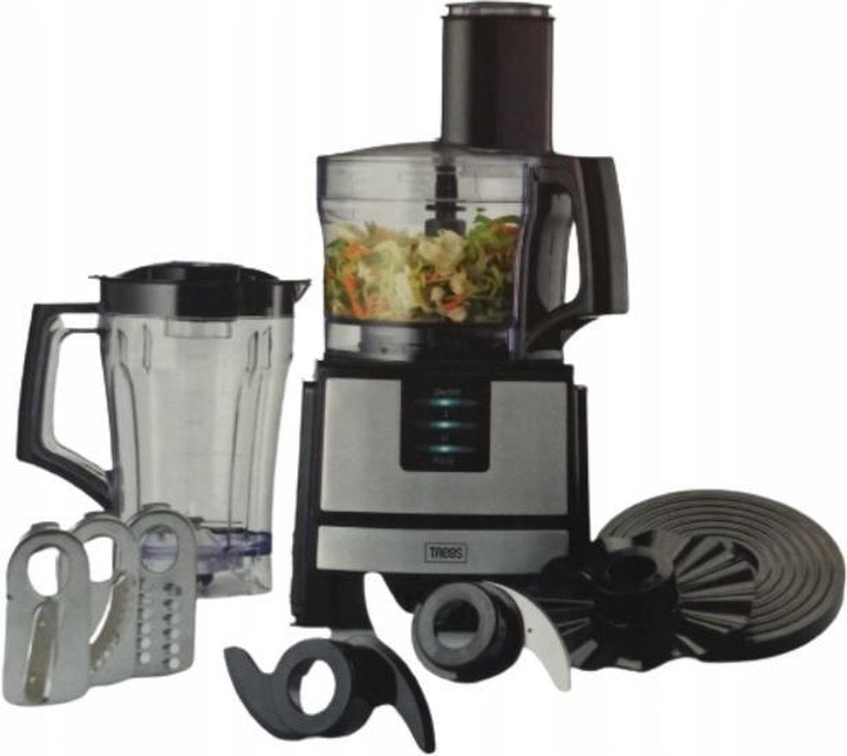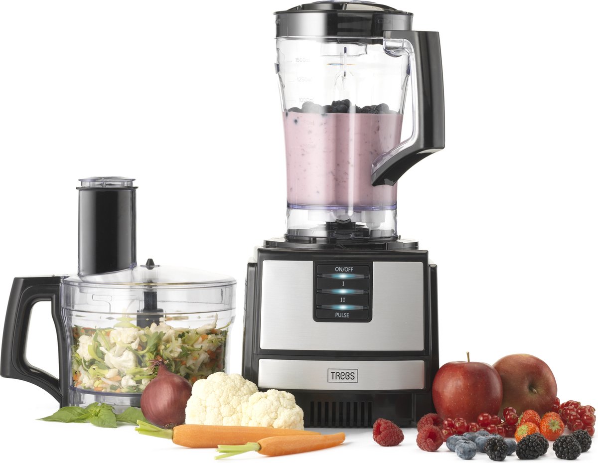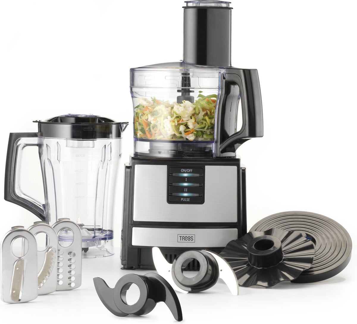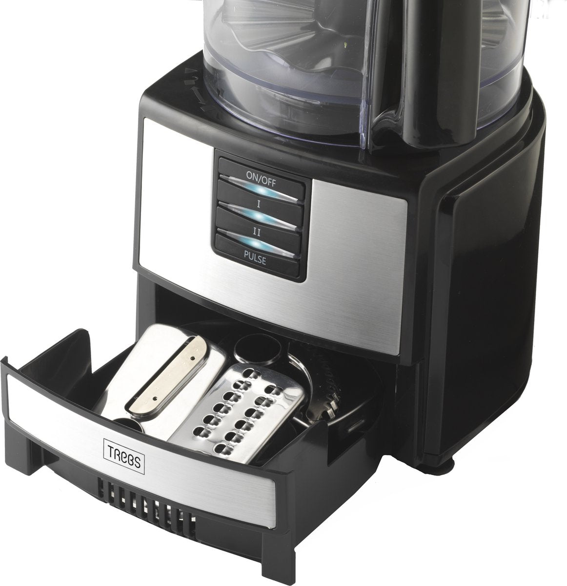 Met deze stijlvolle, compacte en veelzijdige keukenmachine model 99394 van Trebs bereid je de lekkerste gerechten voor. Hij heeft 2 snelheden en een pulse functie en wordt geleverd met een 1.2 liter kunststoffen mengkom en 1.5 liter blenderkom, beide voorzien van een deksel. De meegeleverde accessoires zoals een roestvrijstalen snijmes, 2 snij-/ raspschijven, extra fijne raspschijf en kneedaccessoires kunnen eenvoudig worden opgeborgen in de lade van het apparaat.