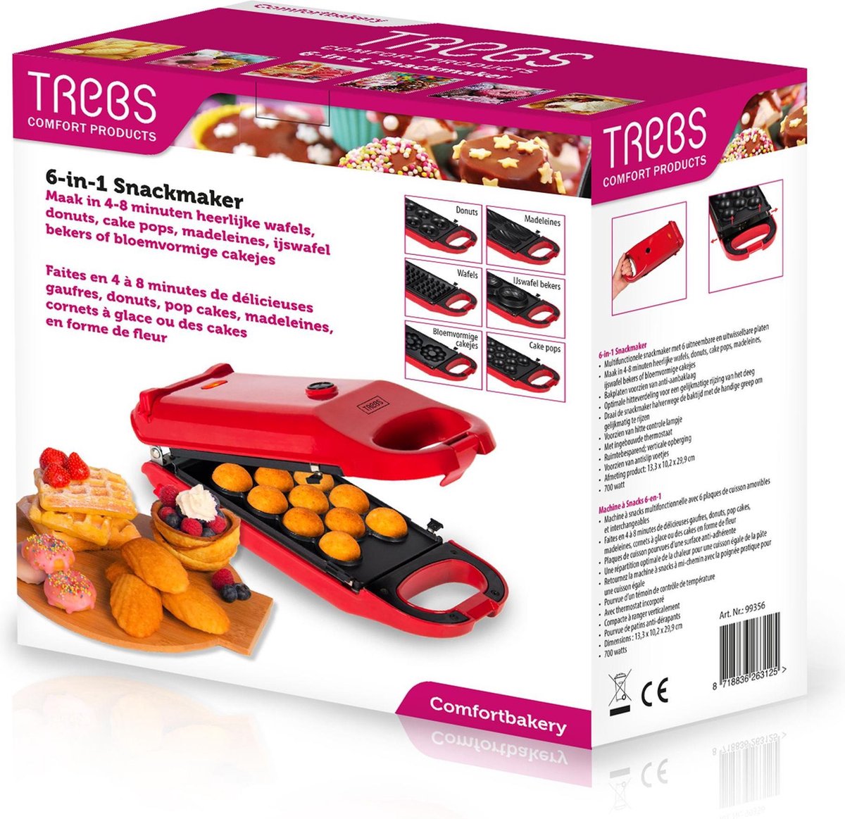 Met de Trebs 6-in-1 Snackmaker 99356 Comfortcook kun je heel veel verschillende snacks maken, zoals wafels, donuts en cakejes. De snackmaker lijkt qua uiterlijk op een tosti-ijzer, maar kan veel meer! Met zijn compacte formaat past hij op elk aanrecht of keukenkastje.