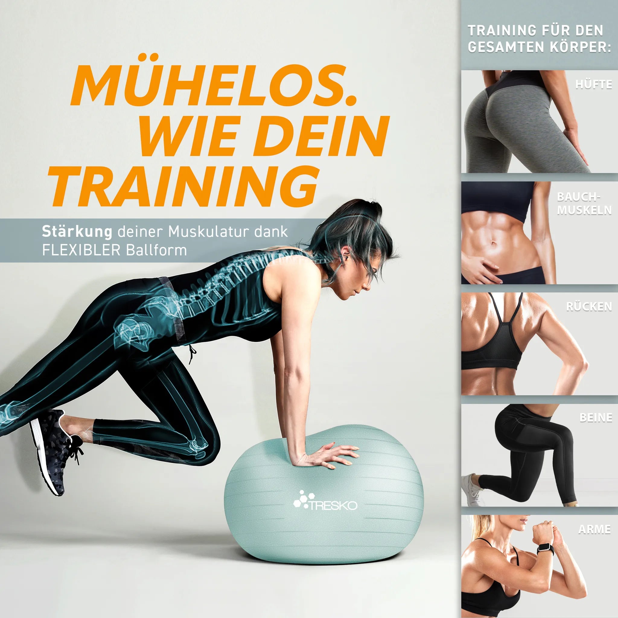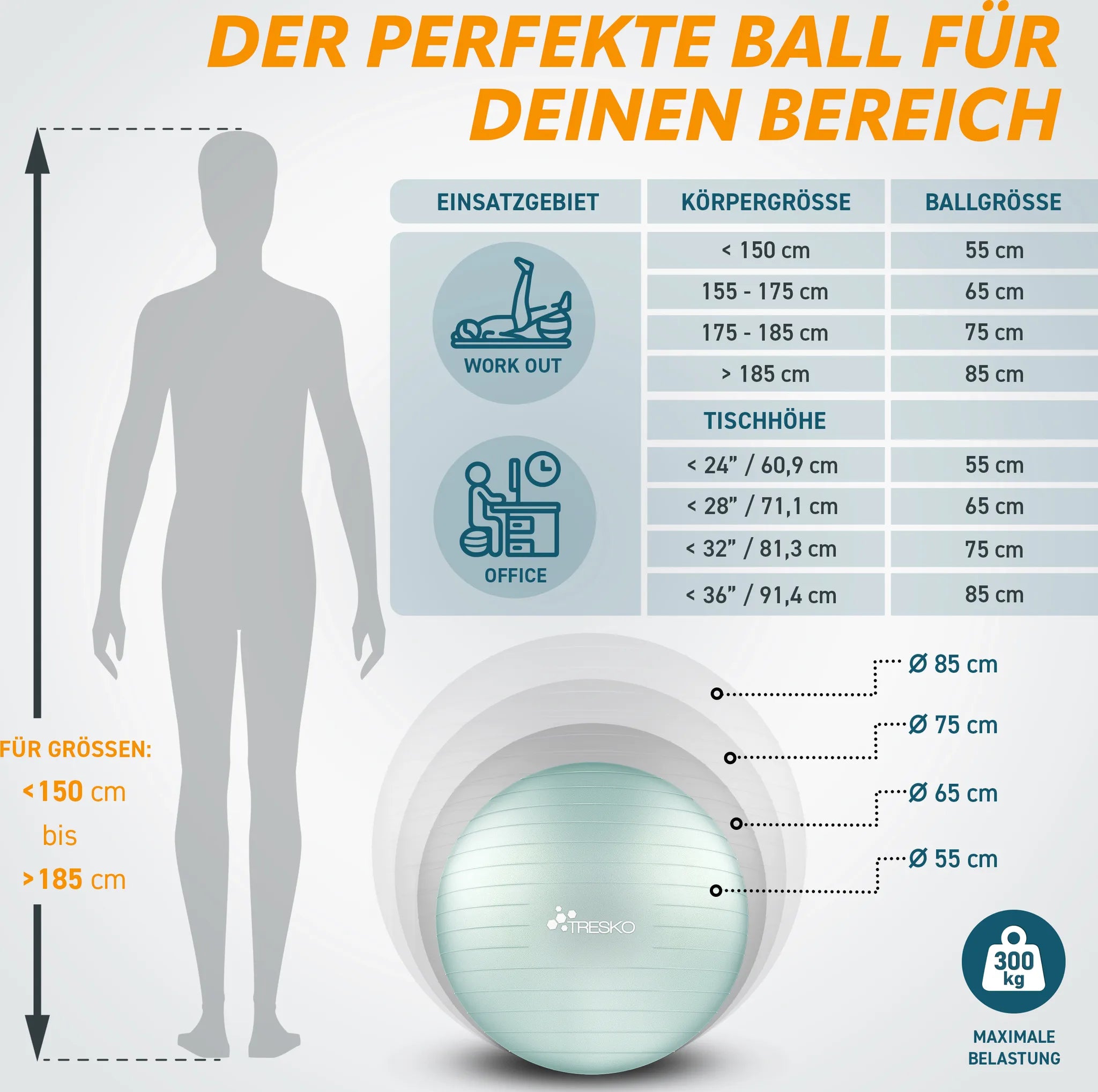 • INCLUSIEF GRATIS POSTER MET OEFENINGEN: elke TRESKO gymnastiekbal wordt geleverd met een gratis poster met 33 functionele trainingsoefeningen. Gebruik bij sport: buiktraining, gymnastiekoefeningen, rugtherapie, rugtraining, ritmische sportgymnastiek, versterking van de spieren van de buik, rug en billen.