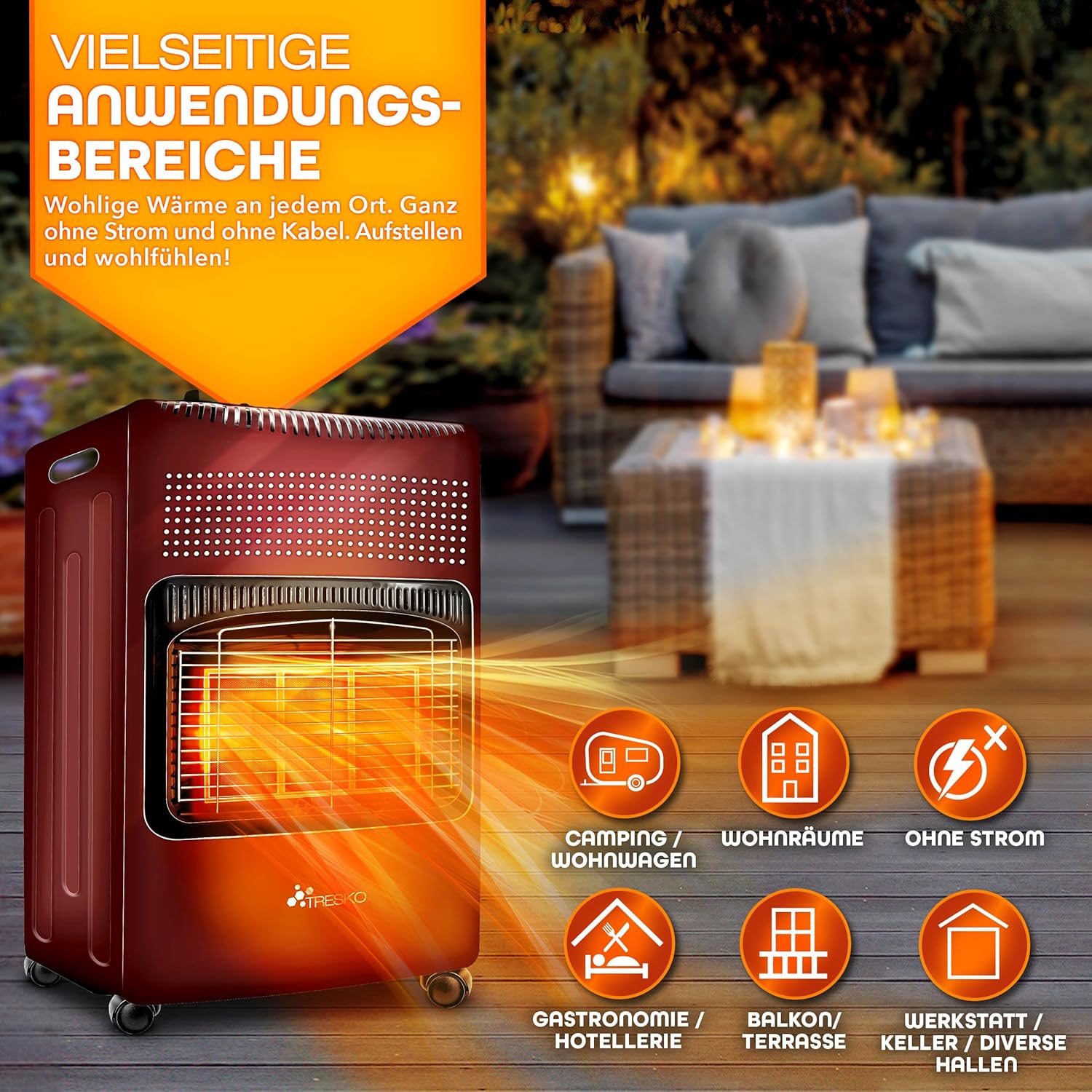 Het tillvex gasverwarmingstoestel is zeer veelzijdig inzetbaar en voldoet aan de Europese veiligheidsrichtlijnen. De ventilatorkachel is compatibel met standaard butaan- en propaan vloeibare gasflessen of een mengsel van beide met maximaal 15 kg, waardoor hij zowel binnen als buiten kan worden gebruikt. Of je hem nu in de woonkamer, camping, gastronomie, hotellerie, balkon, terras, in de tuin, werkplaats of in de kelder gebruikt, hij levert betrouwbare warmte.