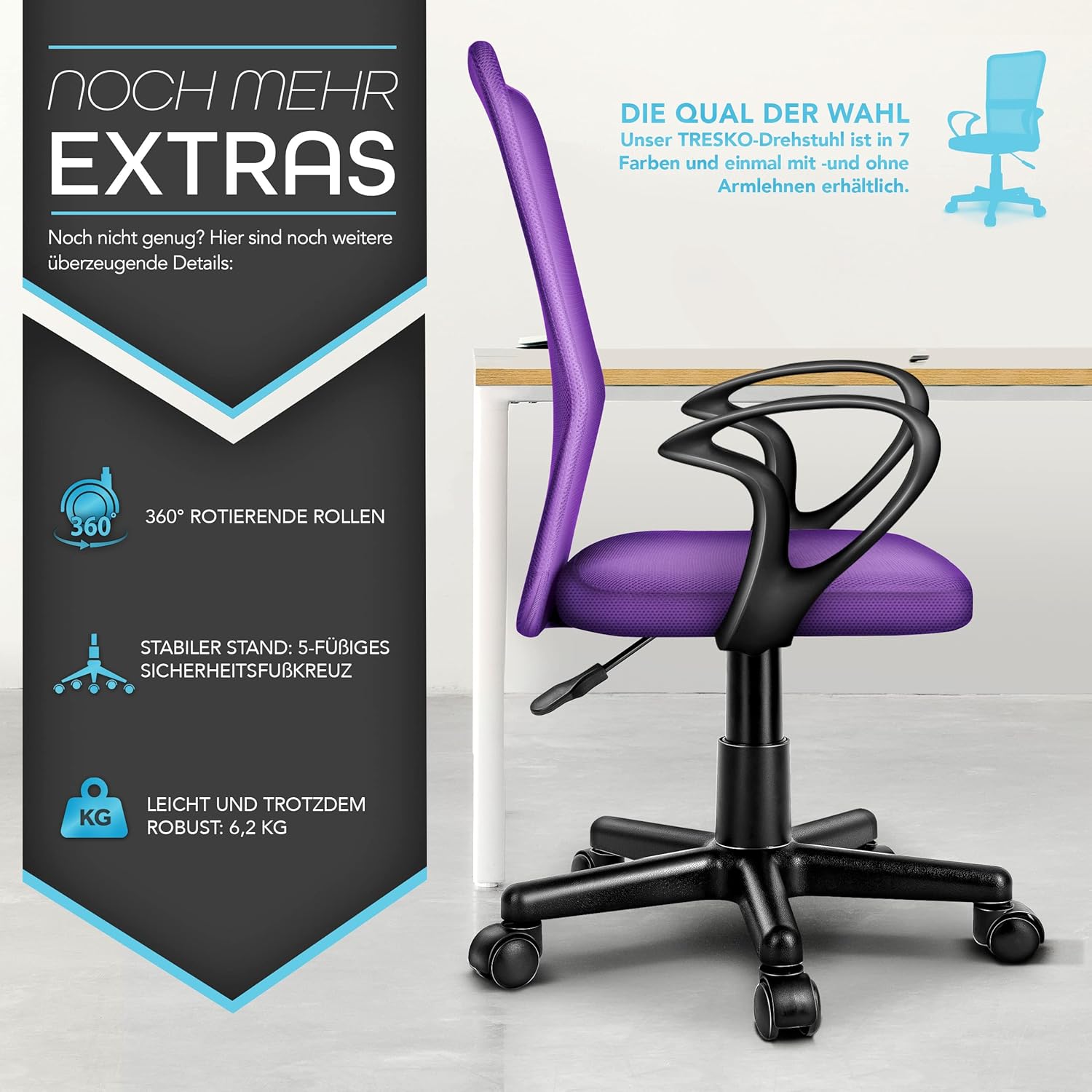 Tresko draaistoel bureaustoel in 7 verschillende kleuren