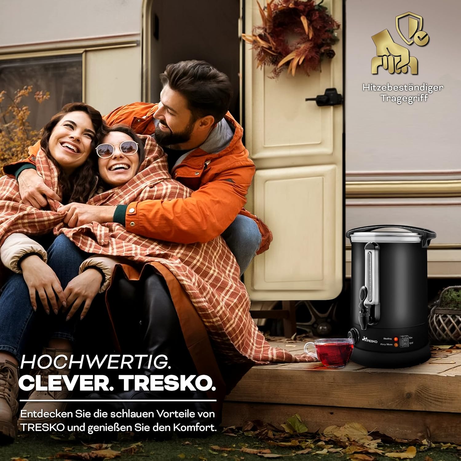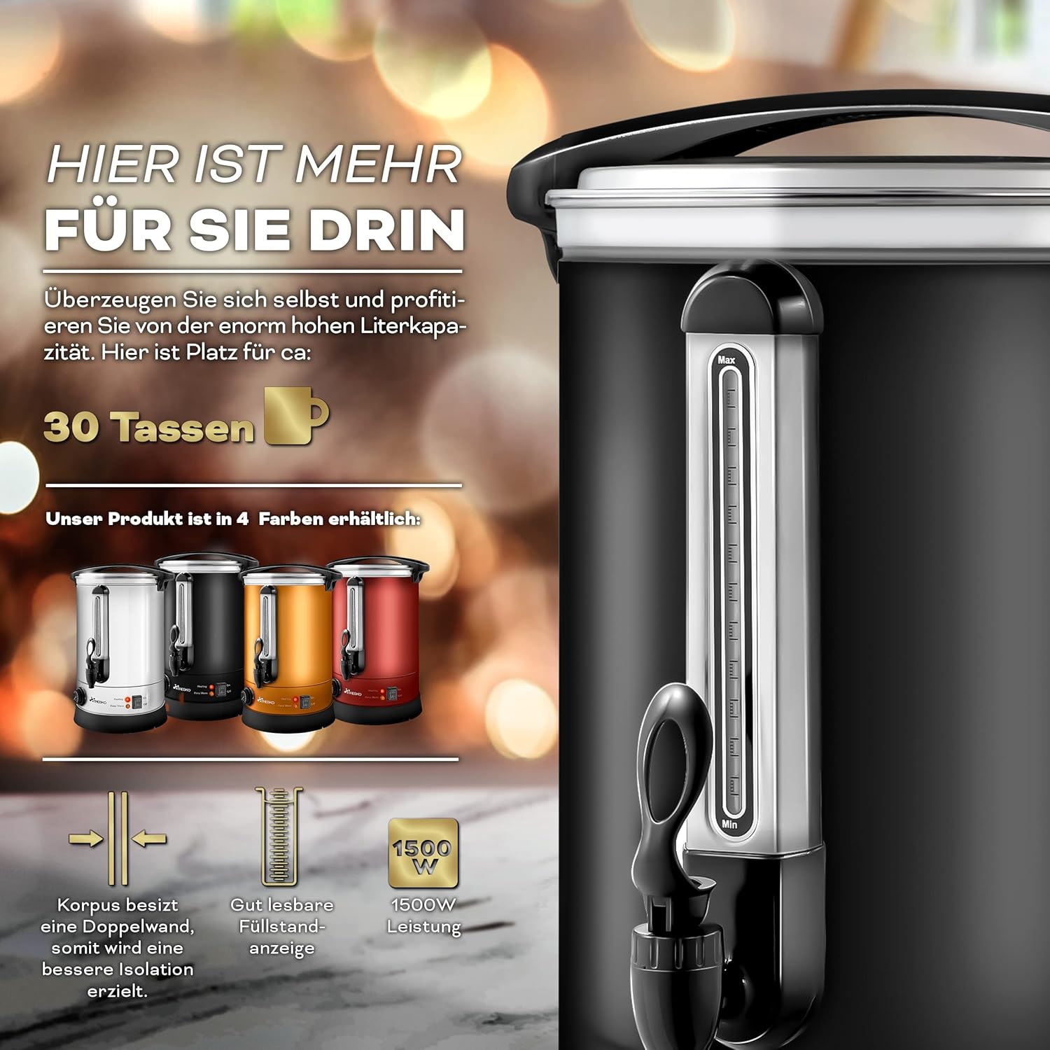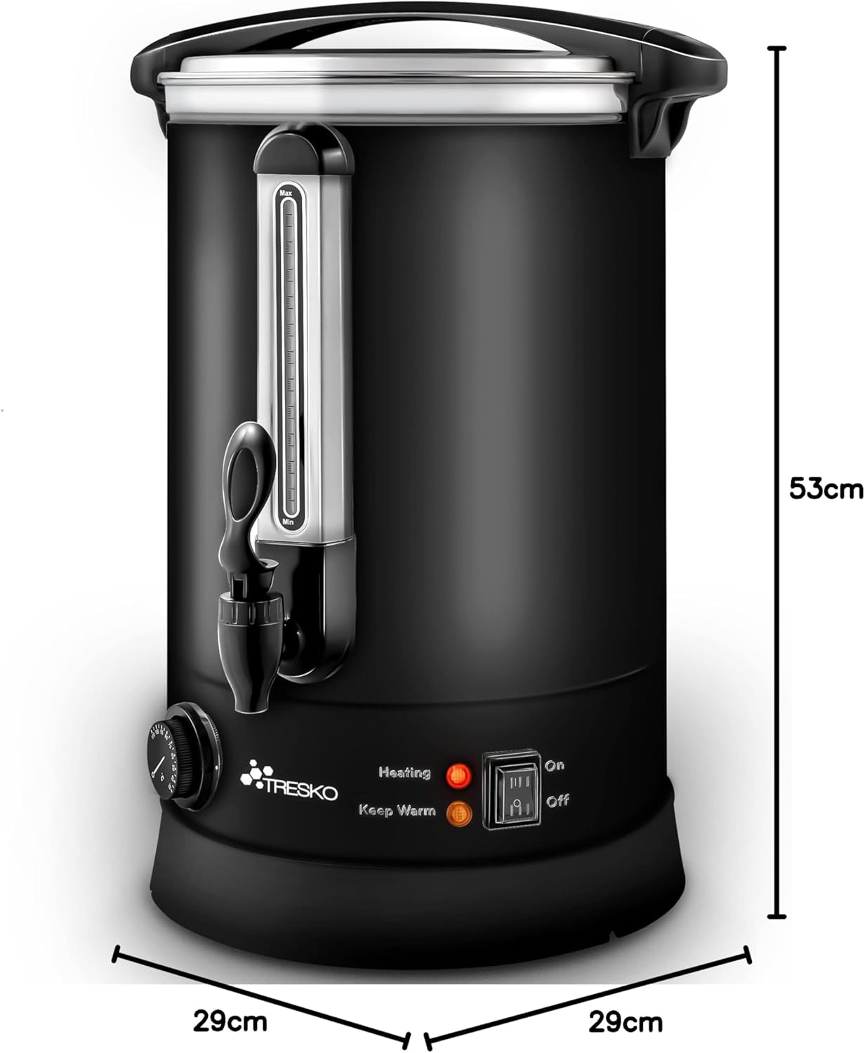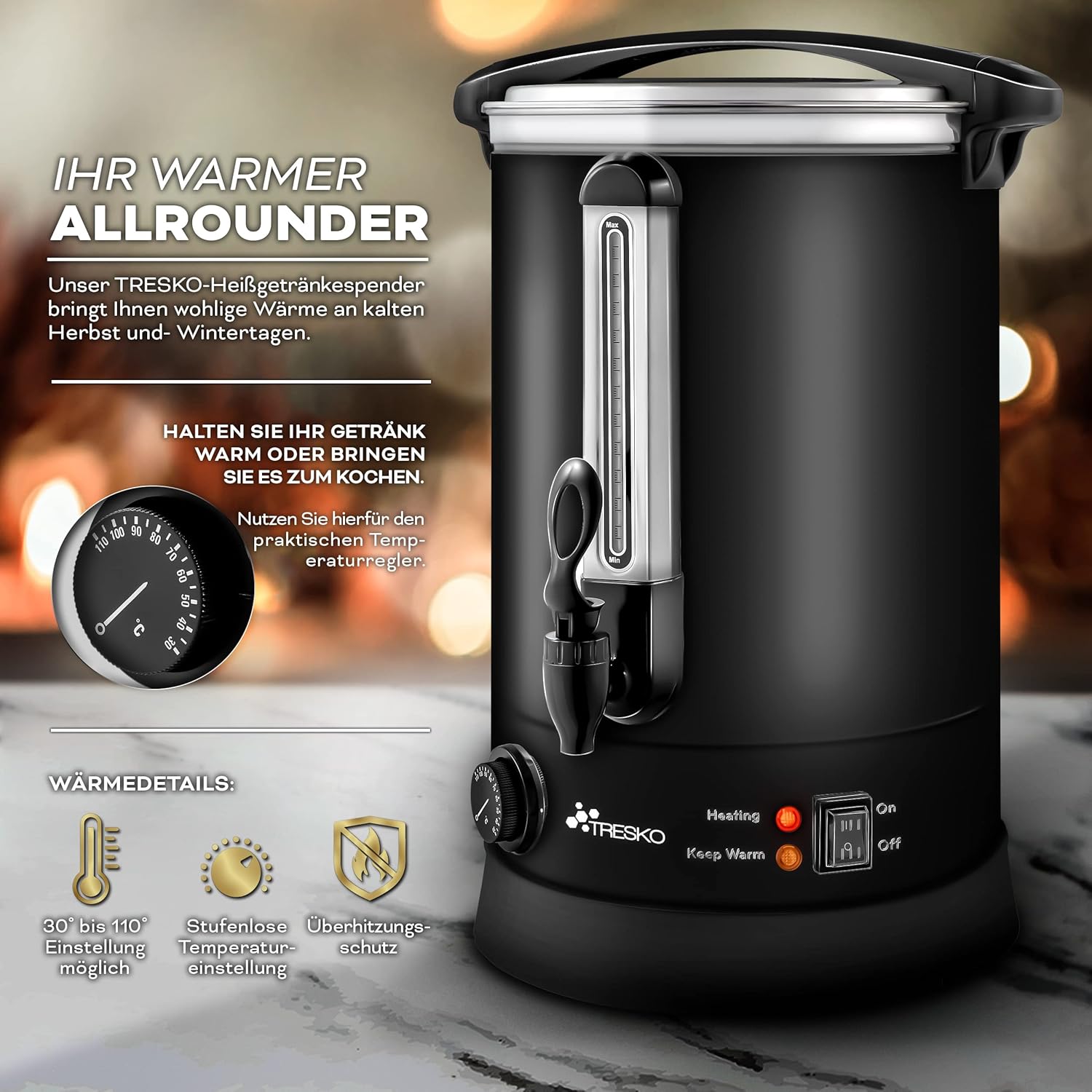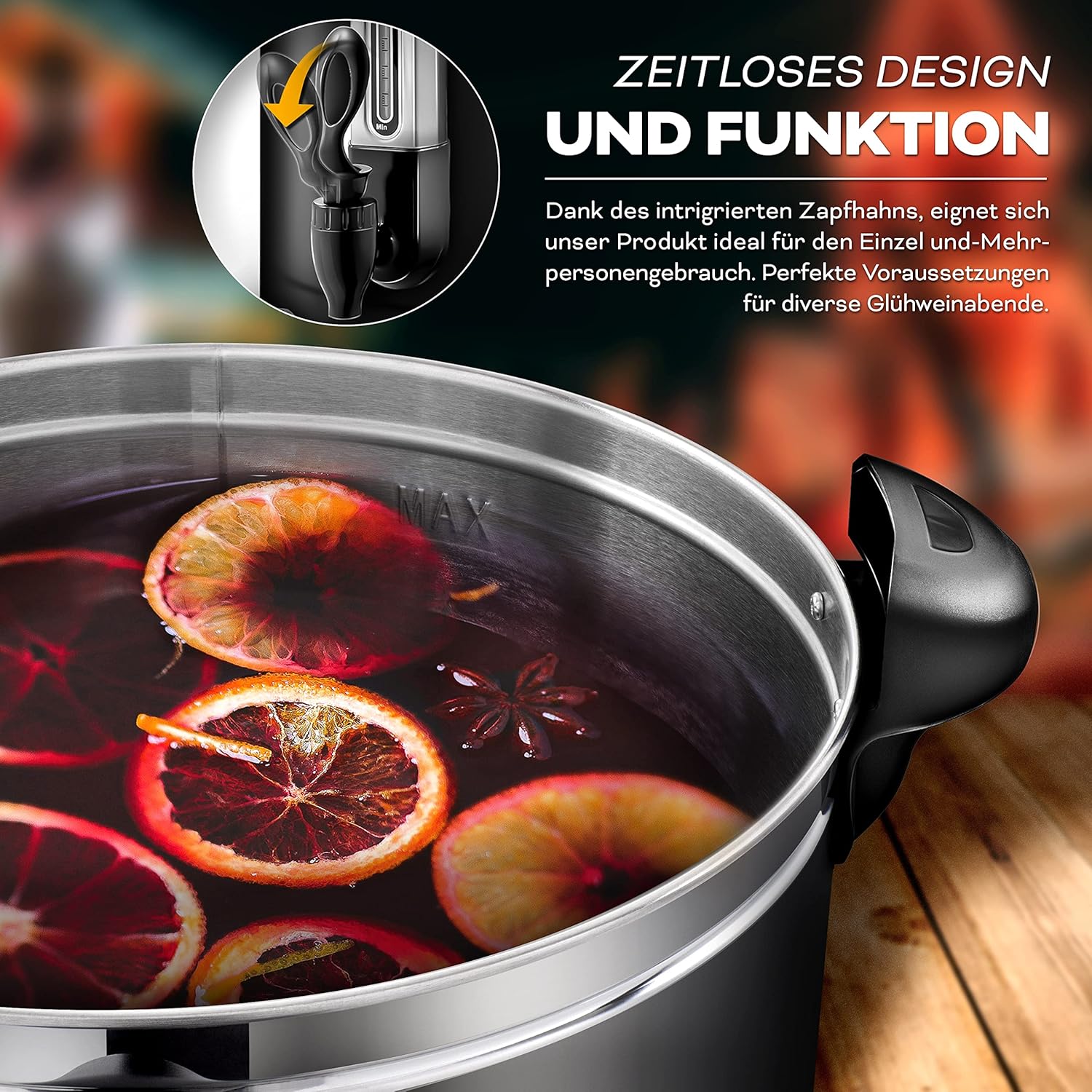 Deze automatische conserveringsmachine beschikt over een temperatuurregeling die instelbaar is tussen 30°C en 110°C en een ingebouwde kraan voor het eenvoudig serveren van glühwein en andere warme dranken.