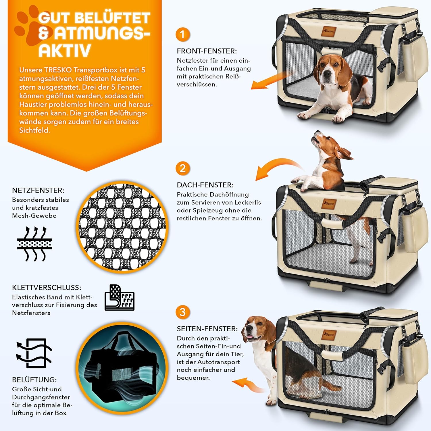 • Optimale keuze voor huisdieren: de transportbox is opvouwbaar en voor huisdieren is verkrijgbaar in verschillende maten en biedt voldoende ruimte voor kleine, middelgrote en grote honden of katten. Bij de TRESKO hondendraagtas is de complete buitenste hoes afneembaar en kan in de machine worden gewassen. Vlekken of ander vuil kunnen met een vochtige doek of een borstel worden verwijderd.