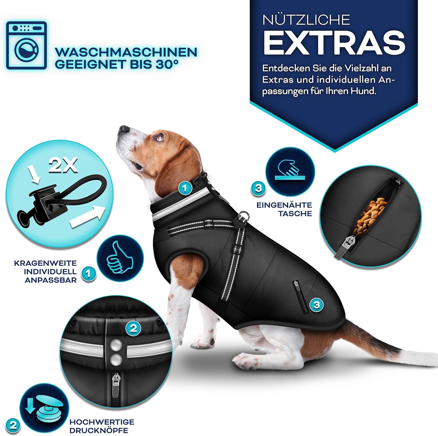 Tresko Hondenjas voor de winter, met reflectoren en 15 stuks poepzakken, waterdicht, hondenjas met harnas, gevoerd wintervest