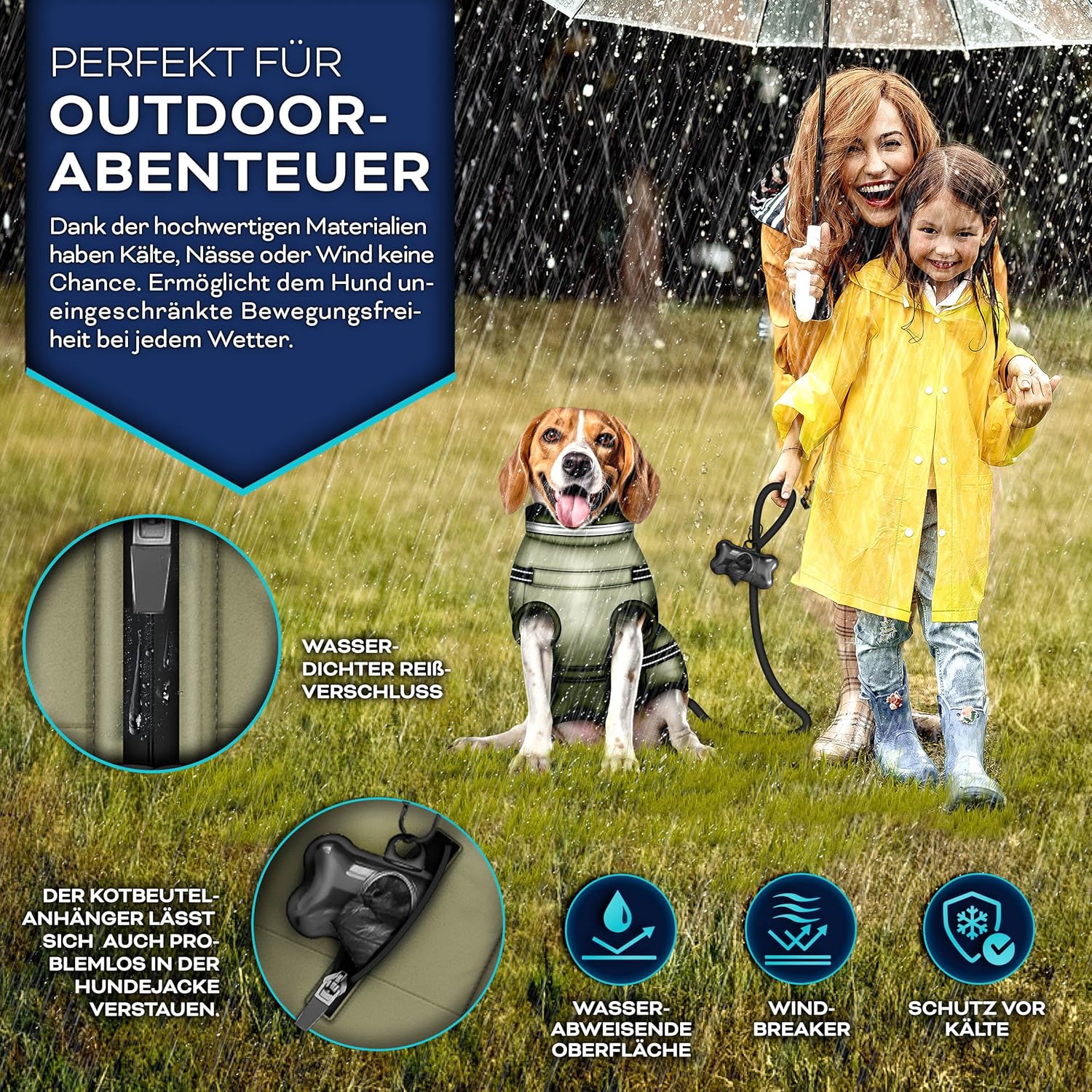 • Met 15 poepzakjes en spenner: bovendien zijn 15 poepzakjes inclusief dispenser. De dispenser kan in het meegeleverde zijvak worden bewaard. Dankzij het geïntegreerde harnas is het aan- en uittrekken van de hondenregenjas kinderspel. Geen moeizaam hanteren meer met aparte tuigjes en jassen. Het praktische ontwerp maakt een snelle en ongecompliceerde aanpassing mogelijk, terwijl je hond comfortabel in zijn jas blijft.