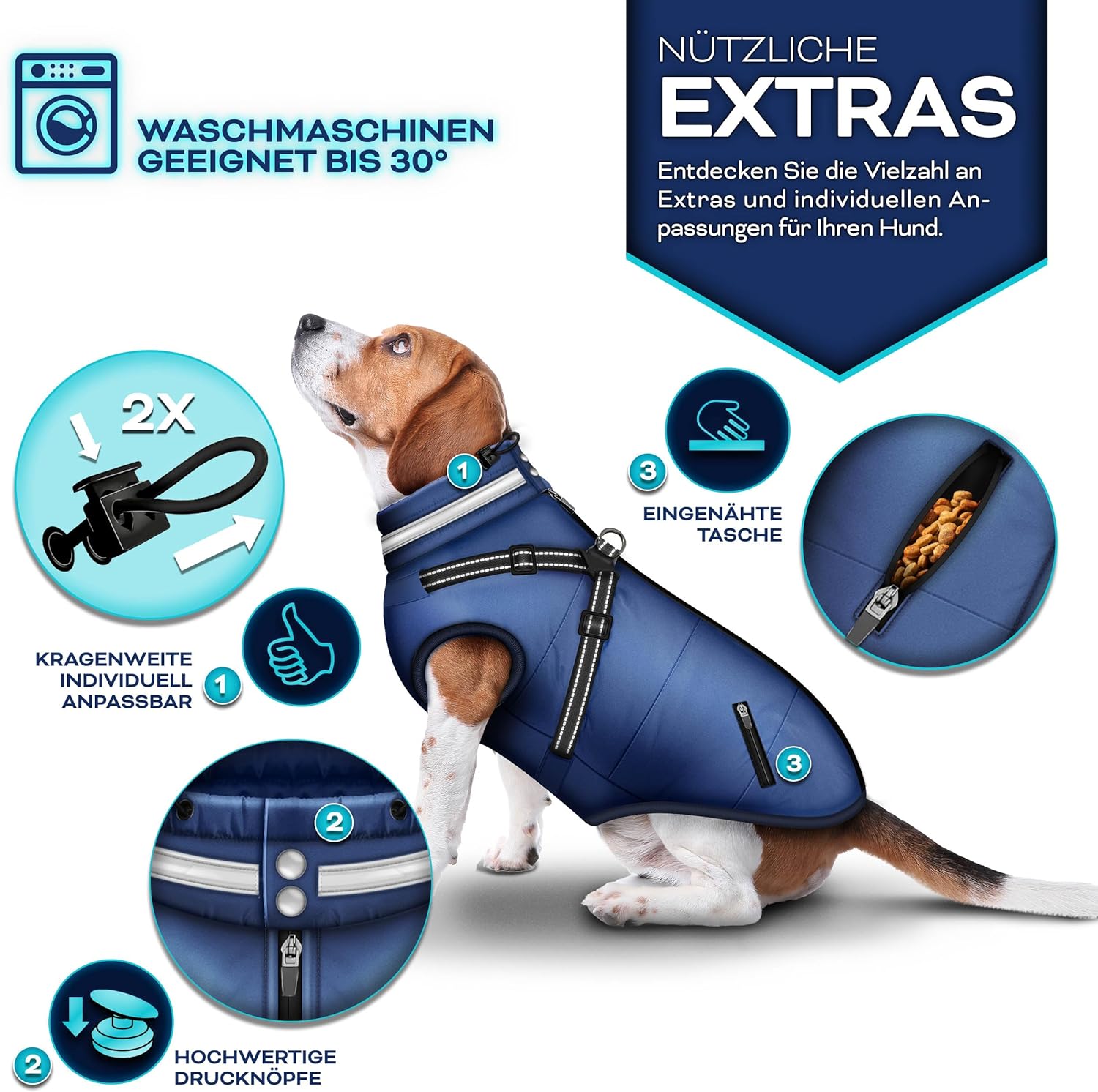 Tresko Hondenjas voor de winter, met reflectoren en 15 stuks poepzakken, waterdicht, hondenjas met harnas, gevoerd wintervest