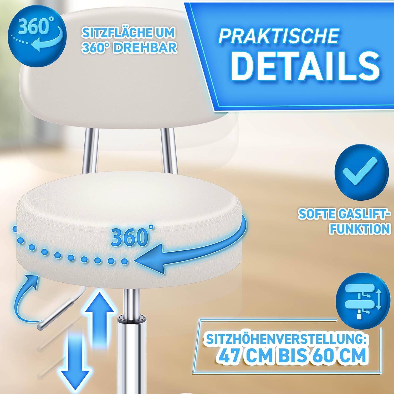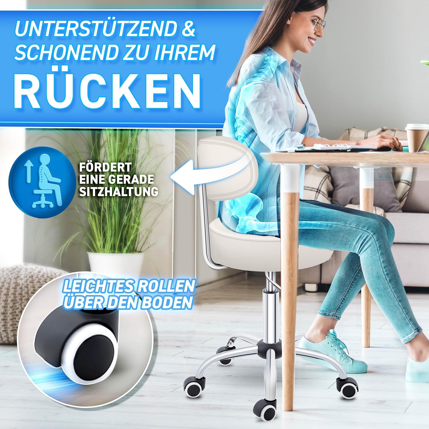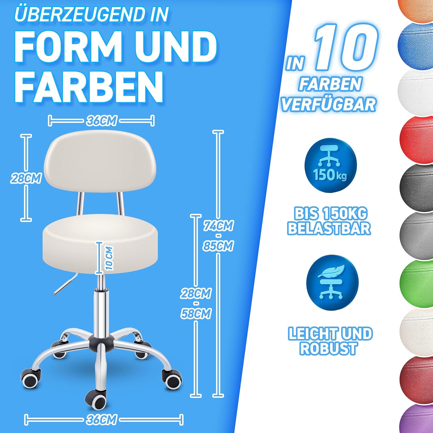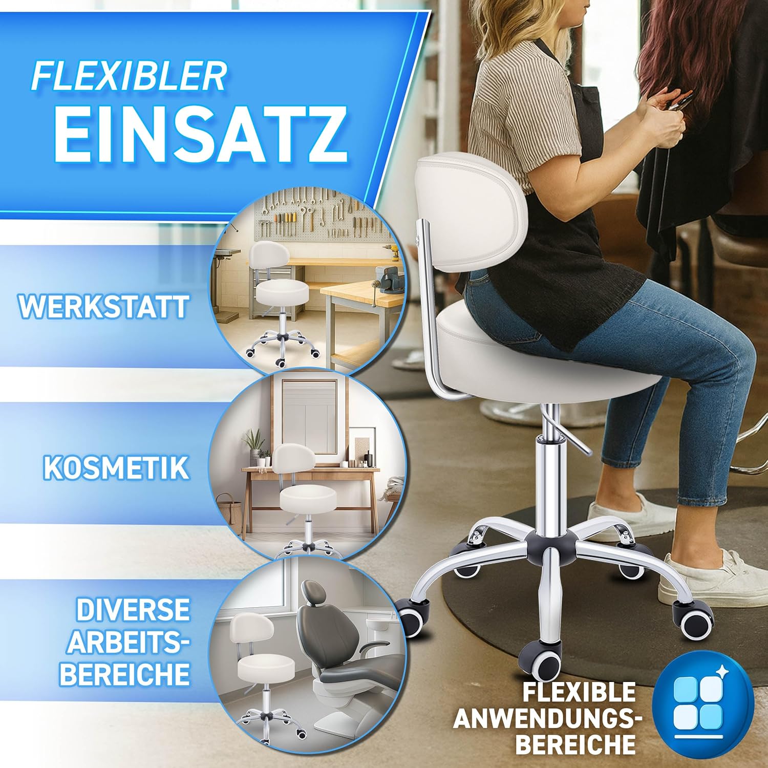 VEELZIJDIG GEBRUIK: deze kruk kan worden gebruikt op kantoor, in de dokterspraktijk, voor cosmetische behandelingen, laboratorium, werk, kapper of in een garage of werkplaats.