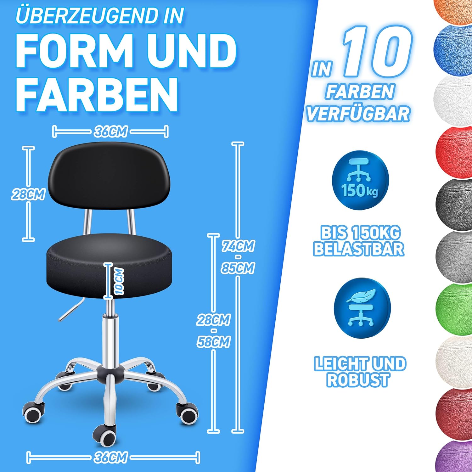• VEELZIJDIG GEBRUIK: deze kruk kan worden gebruikt op kantoor, in de dokterspraktijk, voor cosmetische behandelingen, laboratorium, werk, kapper of in een garage of werkplaats.