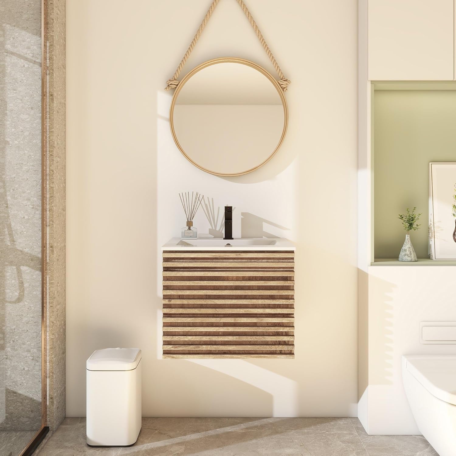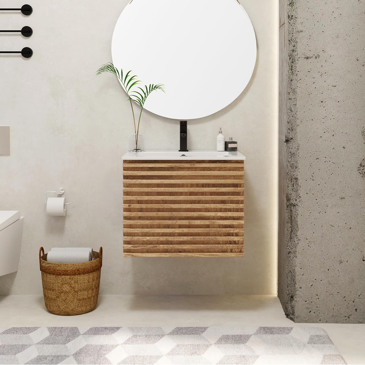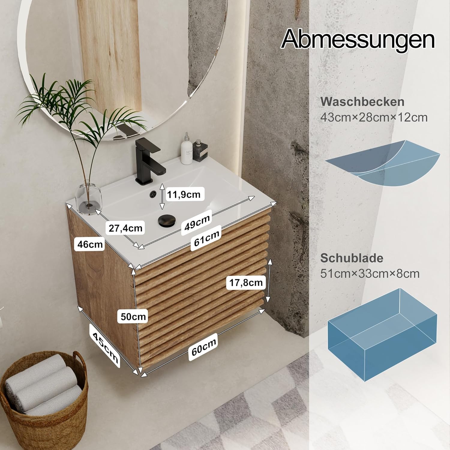 Flexibele maatvarianten: ons aanbod omvat verschillende maatvarianten: 60 cm/75 cm/90 cm. De klant heeft de keuze tussen kleinere modellen voor smalle badkamers of grotere oplossingen voor ruimere badkamers die perfect in de kamer passen.
