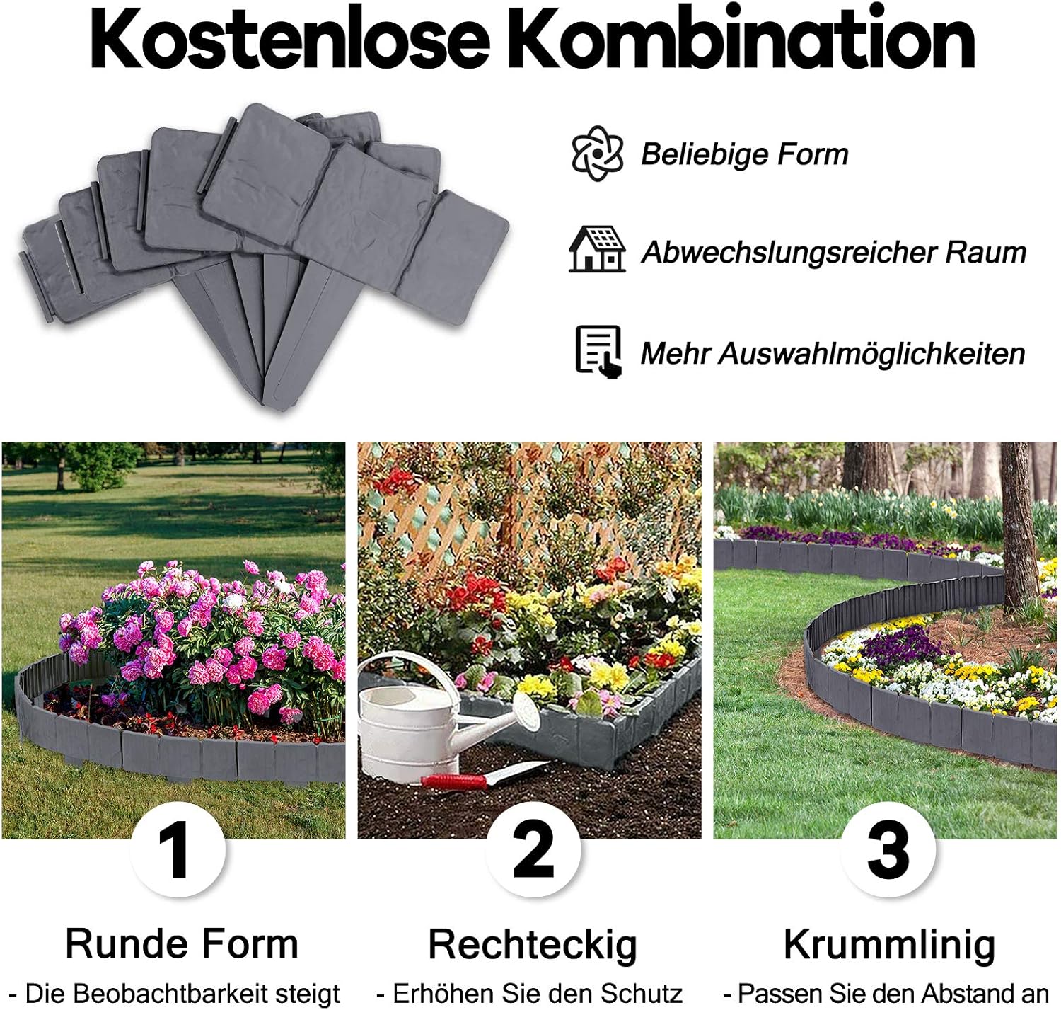Hoogwaardig materiaal: de borderrand is gemaakt van polypropyleen kunststof, uv-bestendig, weerbestendig, duurzaam en milieuvriendelijk. Zonder negatieve effecten op je planten.