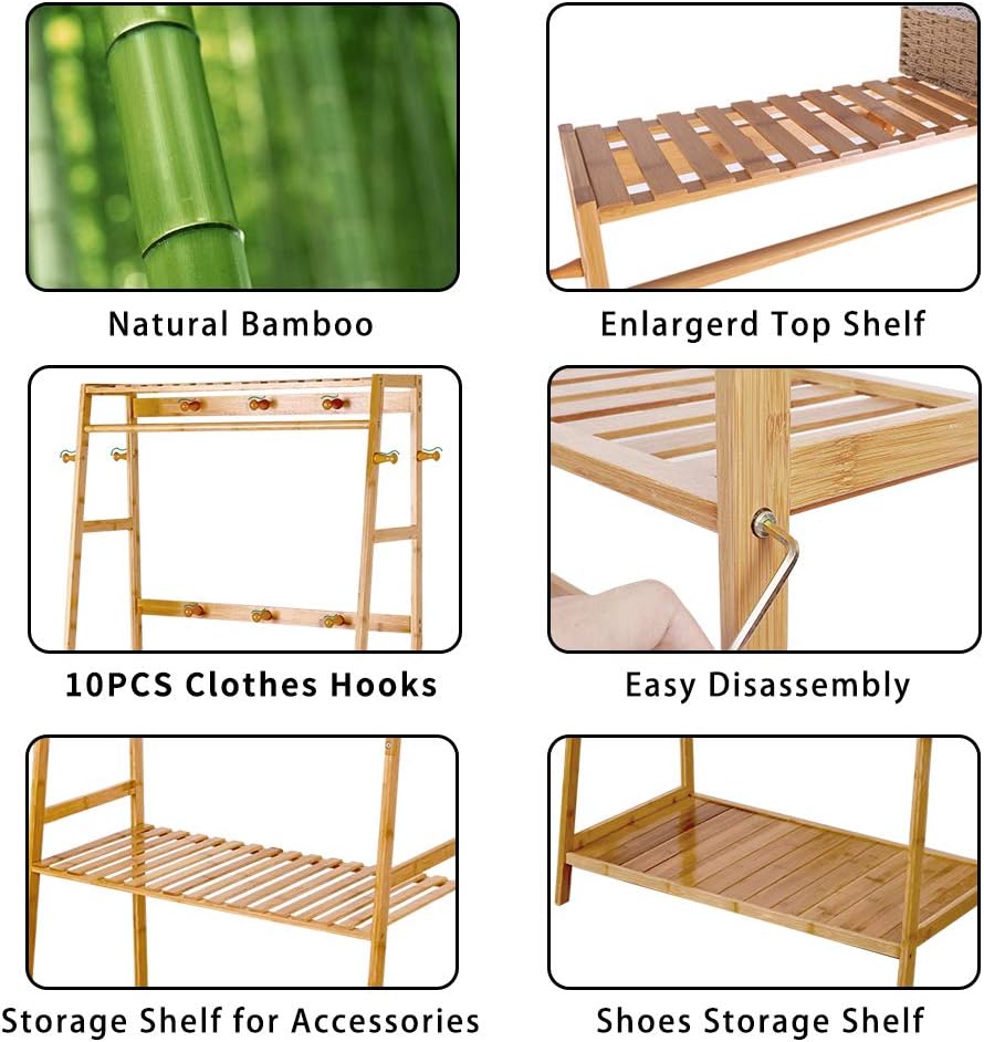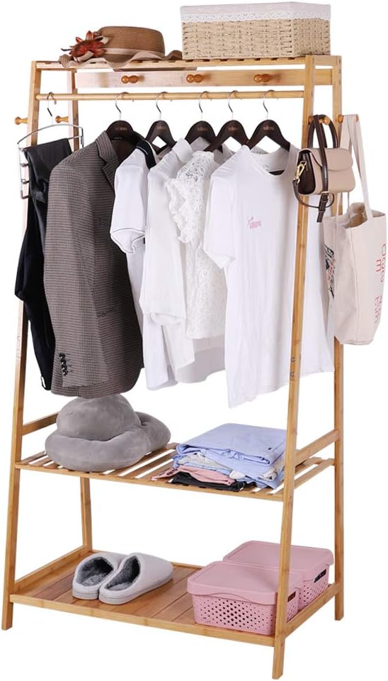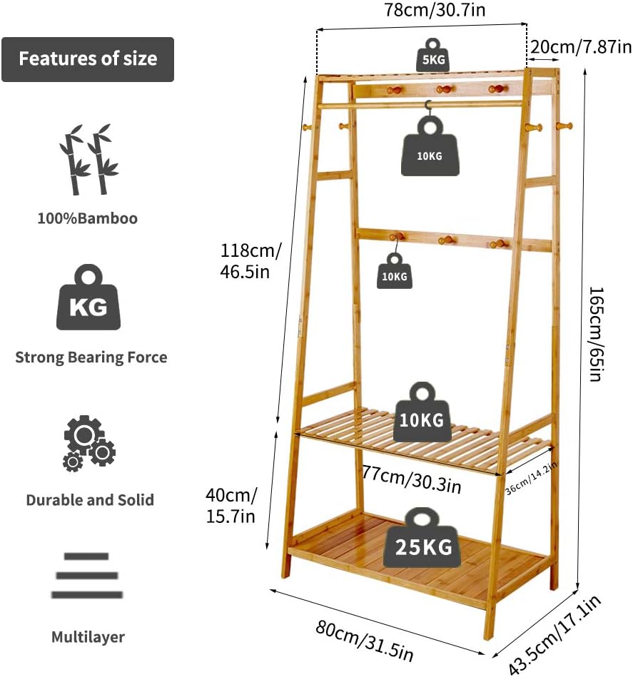 Hoogwaardig materiaal: verwijder je ogen op metalen kledingkasten, evenals breekbare houten kledingkasten. Versier je kamer met deze open kledingkast van bamboe, die een goede glans en een gladde afwerking heeft om krassen op je kleding te voorkomen. Gemaakt van duurzaam en slijtvast bamboe met een draagvermogen van 100 kg. Je kunt dikke manden op de onderste plank plaatsen voor een betere balans