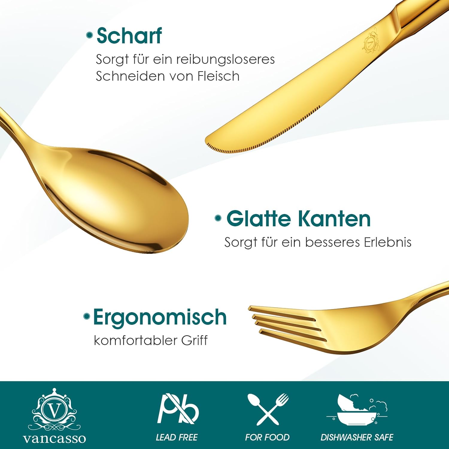 Perfect als cadeau: het vancasso gouden bestek wordt geleverd in een elegante geschenkdoos en is ideaal als cadeau voor housewarming, Thanksgiving, Kerstmis of voor je geliefde. Praktisch, stijlvol en hoogwaardig – een bijzonder cadeau voor familie en vrienden.