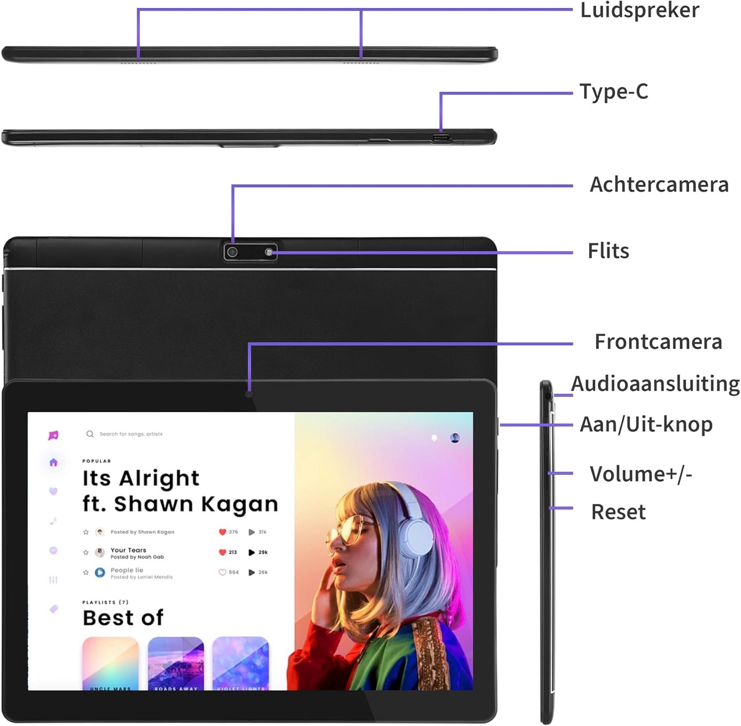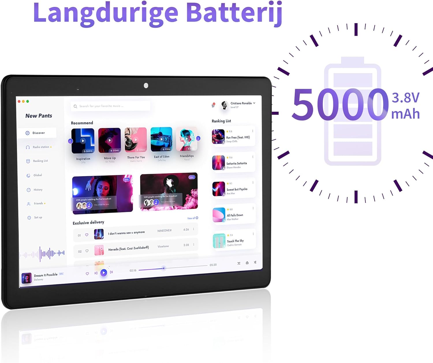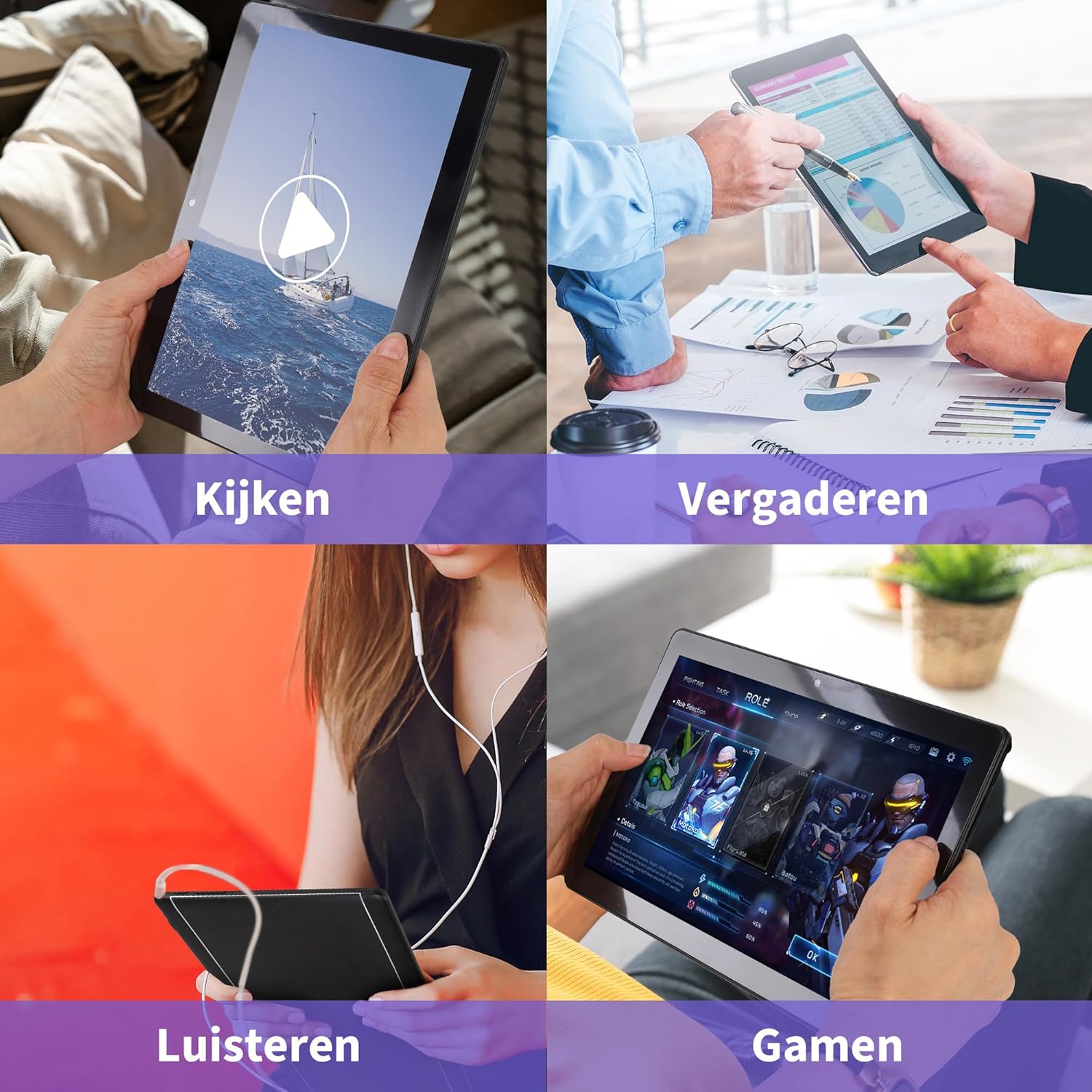 10,1-inch HD IPS-scherm: 1280 x 800 resolutie voor scherpe beelden en levendige kleuren. IPS-technologie voor brede kijkhoeken en verbeterde helderheid. Ideaal voor videostreaming, lezen en surfen op het web