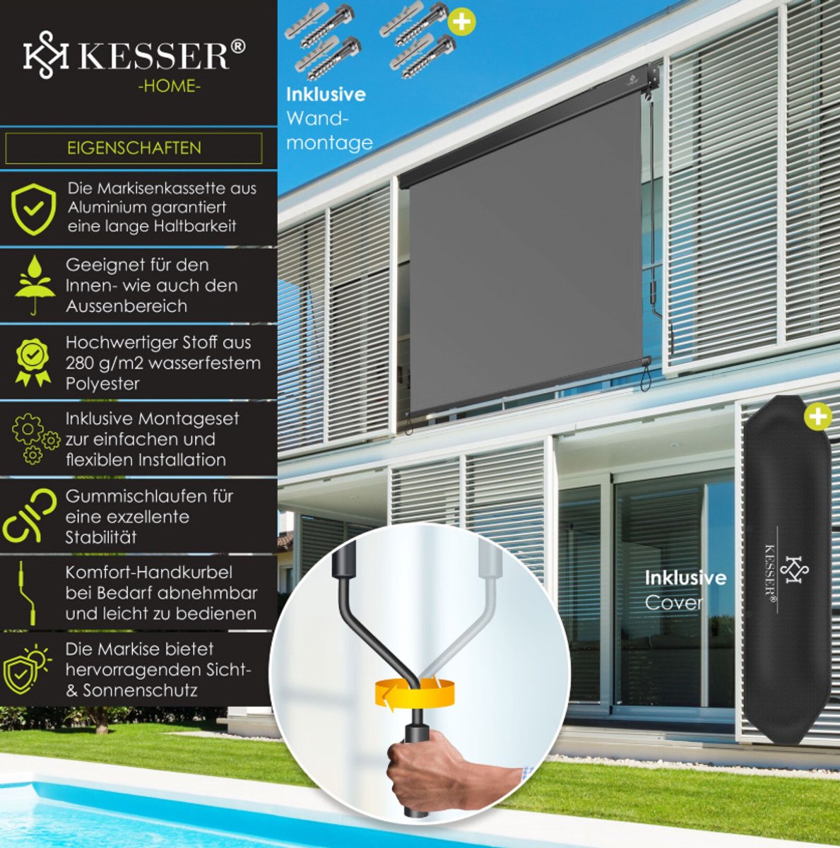 Discrete, elegante en effectieve zonwering: mocht het in de zomer te warm zijn buiten, dan zult u blij zijn met het verkoelende effect in de ruimtes erachter. Naast balkons en terrassen kan de zonwering ook in tuinen, serres of op ramen worden geïnstalleerd om direct zonlicht tegen te gaan. Het verticale zonnescherm beschermt niet alleen tegen de zon, maar kan ook dienen als privacyscherm voor de buren. Het kan ook gebruikt worden als bescherming tegen schittering en weersinvloeden.