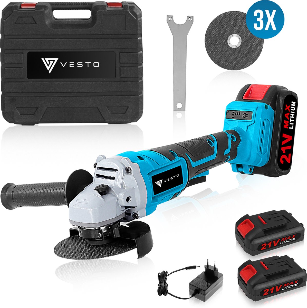 Met de Vesto® Haakse Slijper kunt u eenvoudig metaal, steen en andere materialen slijpen en doorsnijden. Dankzij de 21V MAX Lithium accu’s werkt u altijd draadloos en vrij van beperkingen. Of het nu gaat om een grote klus of een kleine aanpassing, deze haakse slijper biedt de kracht en flexibiliteit die u nodig heeft.