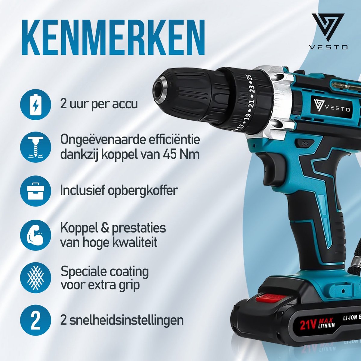 Ga niet voor minder – ervaar de kracht, precisie en prestaties van de Vesto® PowerDrive Accuboormachine. Til jouw vakmanschap naar nieuwe hoogten met Vesto® – waar kwaliteit en innovatie samenkomen.