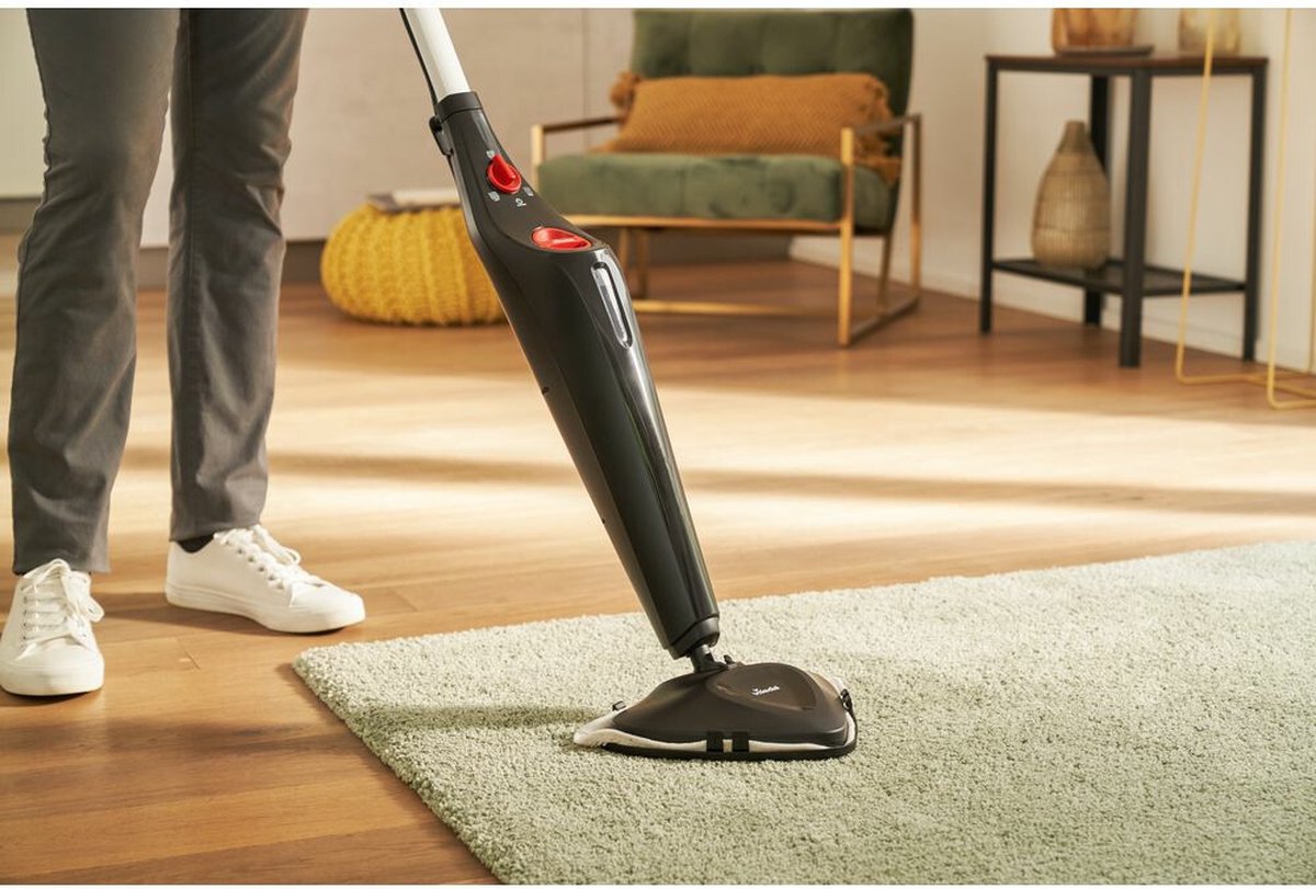 Vileda Steam – onze beste stoomreinigerDeze nieuwe stoomreiniger zorgt voor een doeltreffende, hygiënische schoonmaak door tot 99,9% van de bacteriën en virussen* te doden zonder gebruik te maken van chemische producten. Hij werd speciaal ontworpen om gemakkelijk in de hoeken en onder de meubels schoon te maken. Dankzij het opzetstuk voor (vast)tapijt was het nog nooit zo gemakkelijk om tapijten op te frissen.Dankzij zijn compacte driehoekige kop en zijn design glijdt hij snel en gemakkelijk over gelijk welk vloeroppervlak. Zijn nieuwe ergonomische handgreep maakt het gebruik ervan nog comfortabeler.De stoombezem Steam kan worden gebruikt op alle soorten vloeren en warmt op in slechts 15 seconden. Dankzij de nieuwe temperatuurdetectie kunt u nu gemakkelijk van stopcontact veranderen om een andere kamer schoon te maken zonder dat u moet wachten totdat hij opnieuw is opgewarmd, want hij is onmiddellijk terug gebruiksklaar.Met het waterreservoir van 400 ml kan de Steam gedurende 28 minuten gebruikt worden. Ook is het waterpeil nu zichtbaar, zodat u gemakkelijk kunt controleren of er nog voldoende water in het reservoir zit of dat het moet worden bijgevuld.*Getest op de E. Coli-bacterie en het gemodificeerde vacciniavirus Ankara (MVA) met een nastoomprocedure van 1 minuut (zie handleiding).