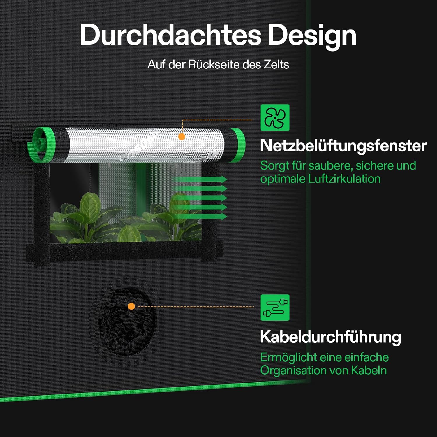 Veelzijdig inzetbaar: met een kabeldoorvoer en de juiste maat is onze kleine tent geschikt voor de meeste hydrocultuur apparaten en stelt u in staat om het hele jaar door te groeien. Maak heel eenvoudig je eigen aerogin – overal in je huis, van balkons en woonkamers tot garages