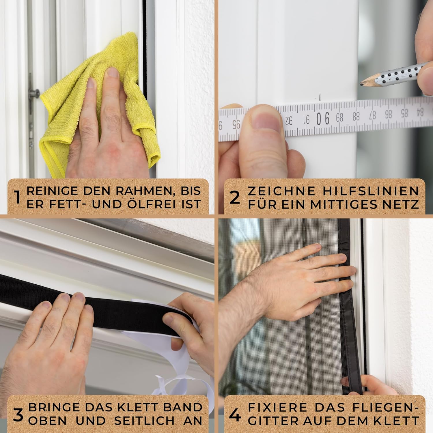 Stevige grip: dankzij de extra brede klittenbandsluiting aan de bovenkant houdt je insectennet perfect. Geschikt voor alle gladde oppervlakken. Bovendien kan het weer zonder resten worden verwijderd.