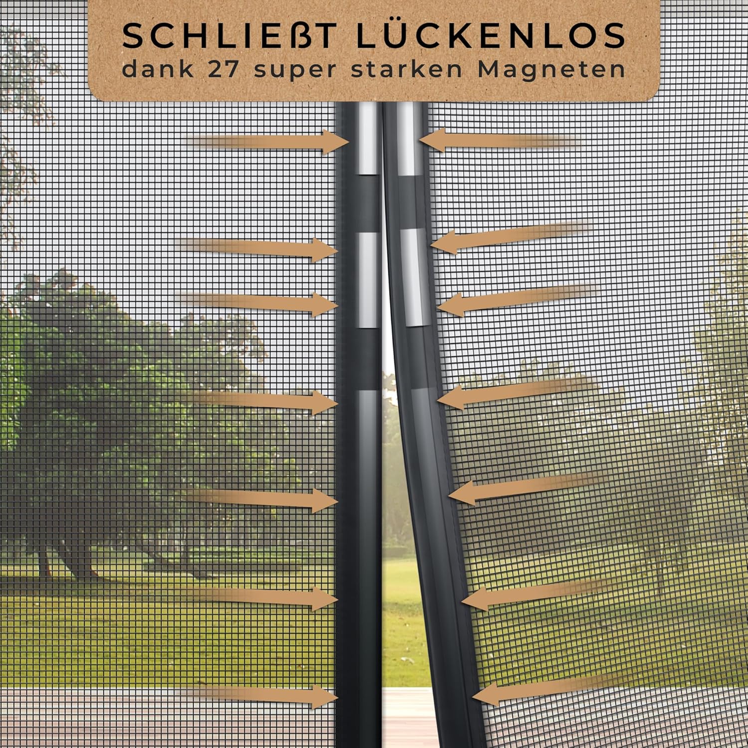 Sluit zonder gaten – dankzij 26 magneten sluit het vliegengordijn zonder problemen. De magneten zijn precies zo sterk dat je vliegengaas bij het lopen bijna vanzelf opent.