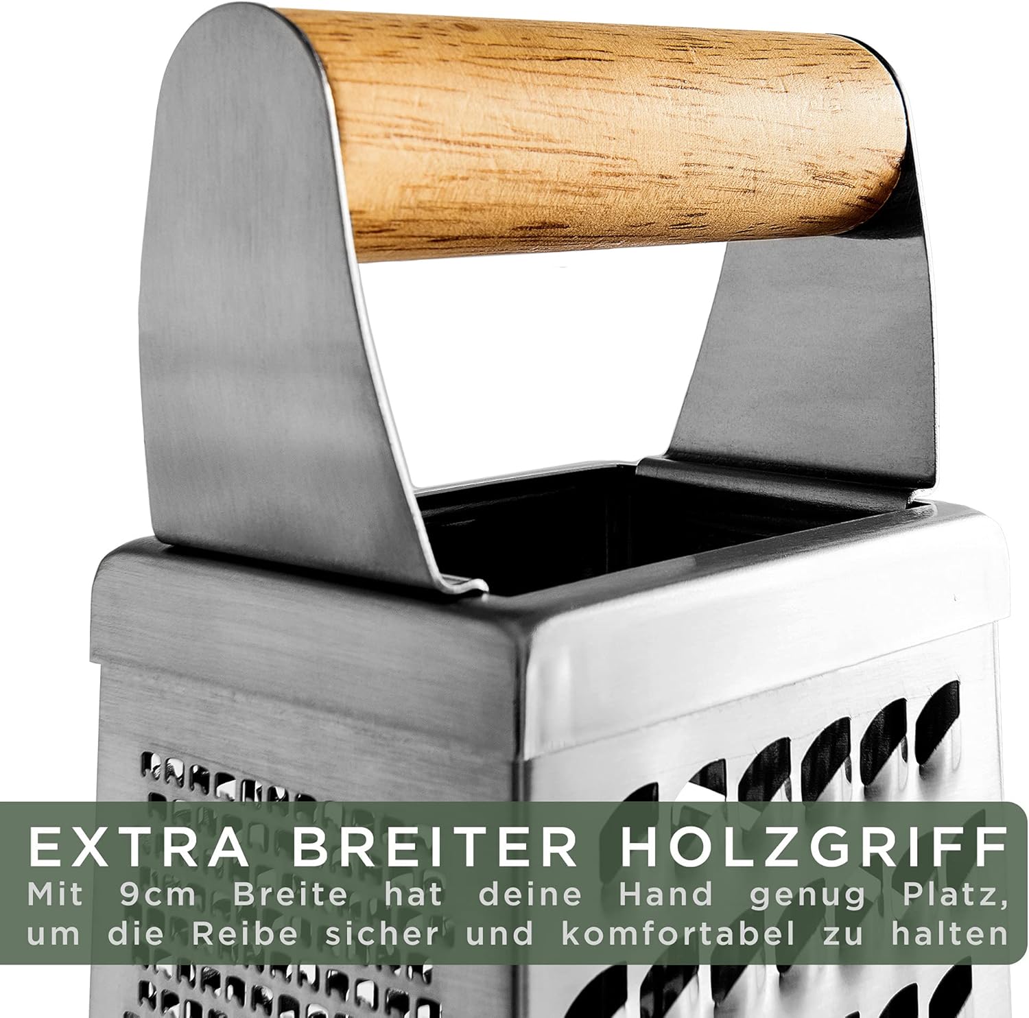 Elegante materialen: hoogwaardig echt hout en roestvrij 304 roestvrij staal zorgen voor de maximale duurzaamheid van je WALDWERK keukenrasp. Daardoor heb je vele jaren plezier bij het koken