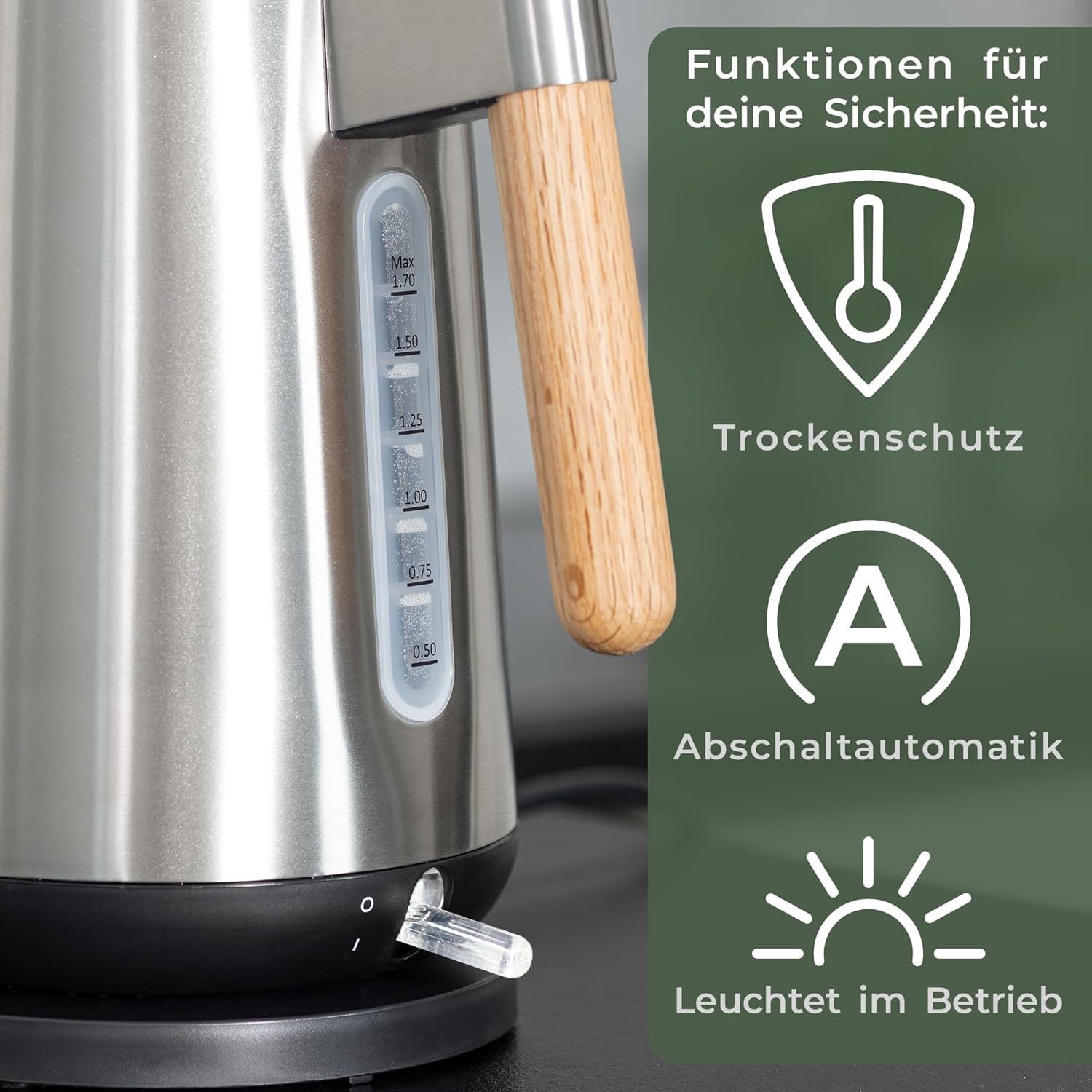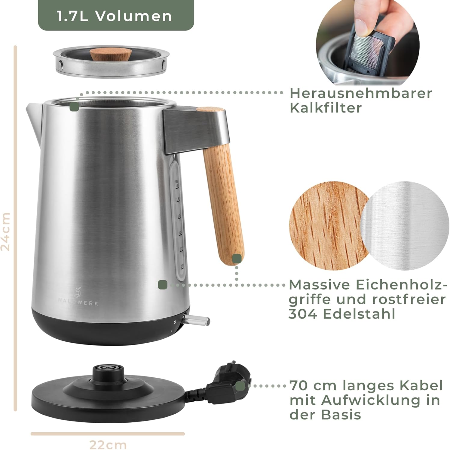 3000 Watt: de krachtige waterkoker verwarmt je water bliksemsnel. Dankzij maximale kracht hoef je niet lang te wachten tot het water begint te brodelen.
