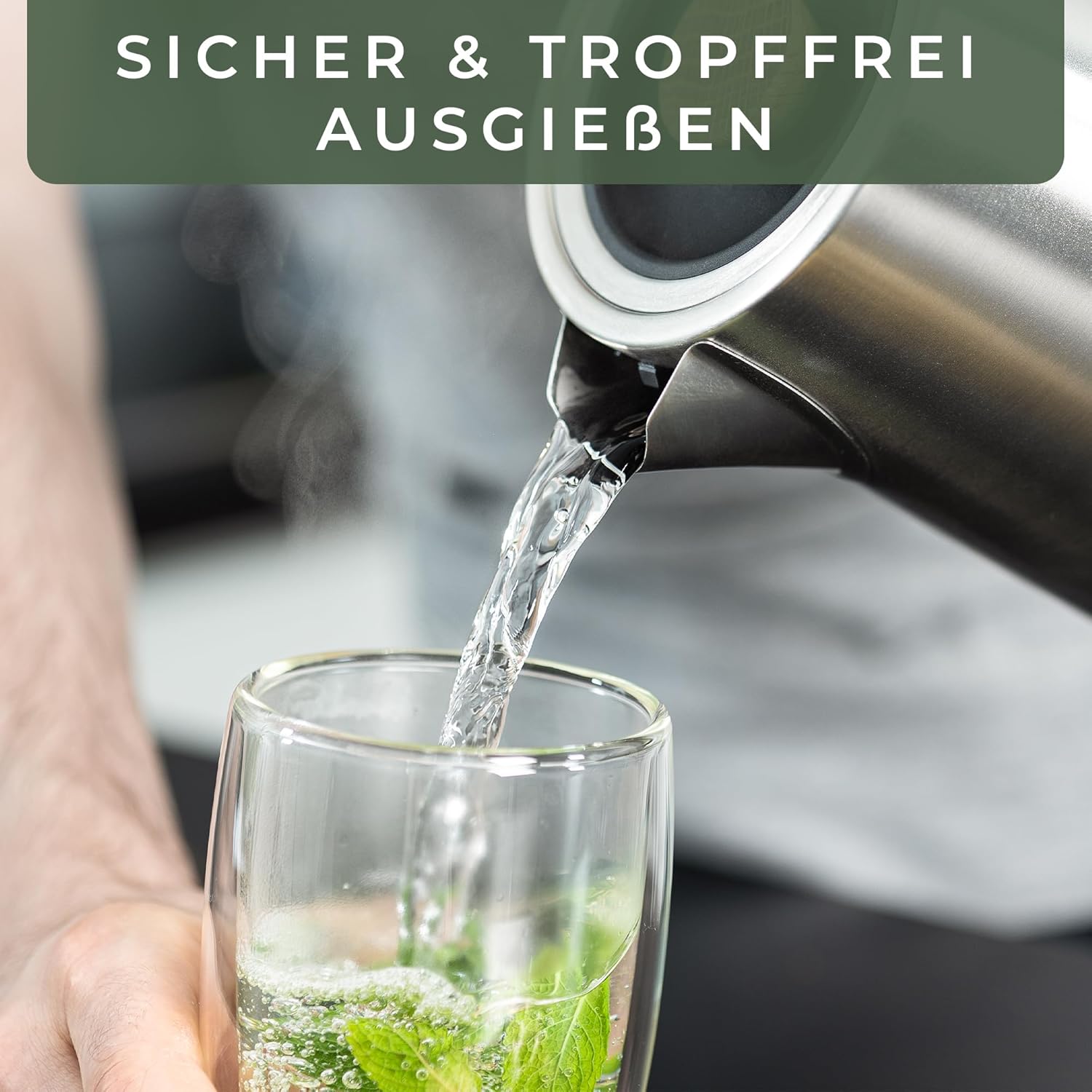 100% druppelvrij: de speciaal gevormde tuit garandeert nauwkeurig en druppelvrij schenken. Elke druppel belandt veilig in je beker, French Press of kookpan