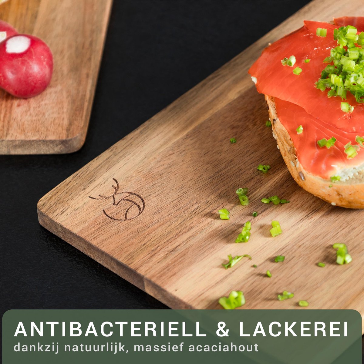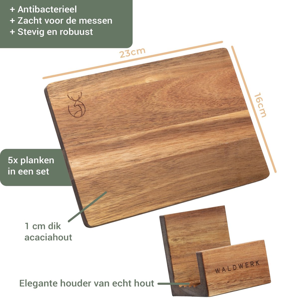 WALDWERK snijplank set van 3 (40x30 / 33x24 / 26x18cm) gemaakt van massief acaciahout - snijplankenset met plankenstandaard - 2 cm dikke houten planken met sapgroef - design snijplankenset