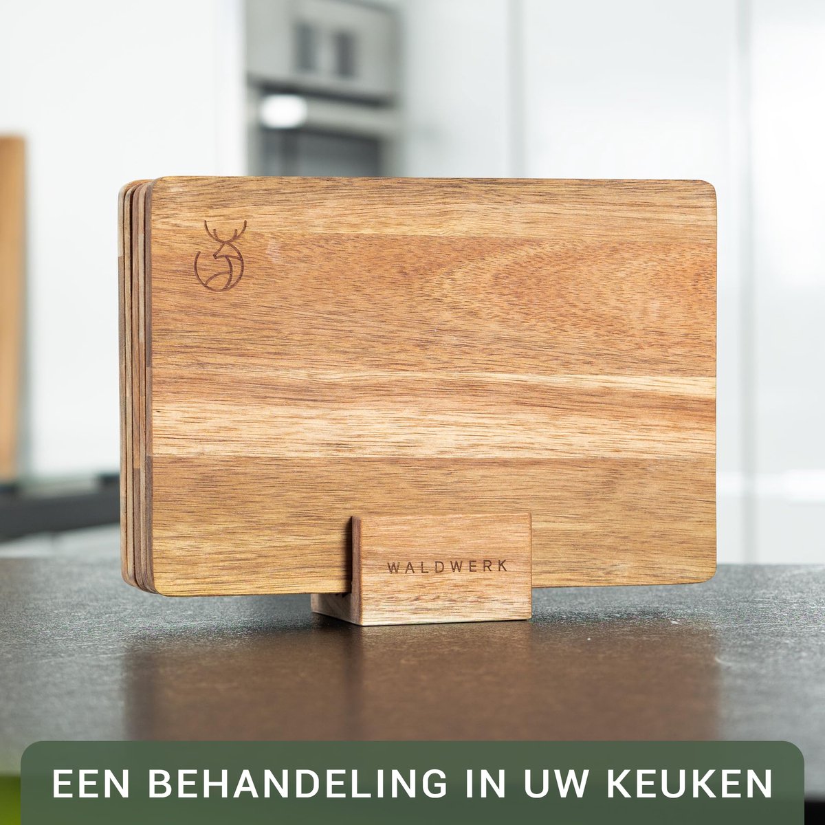 INCLUSIEF SNIJPLANKSTANDAARD - voor snel drogen en een elegante opberging van je WALDWERK snijplanken. Houd je houten planken altijd binnen handbereik en klaar voor gebruik!