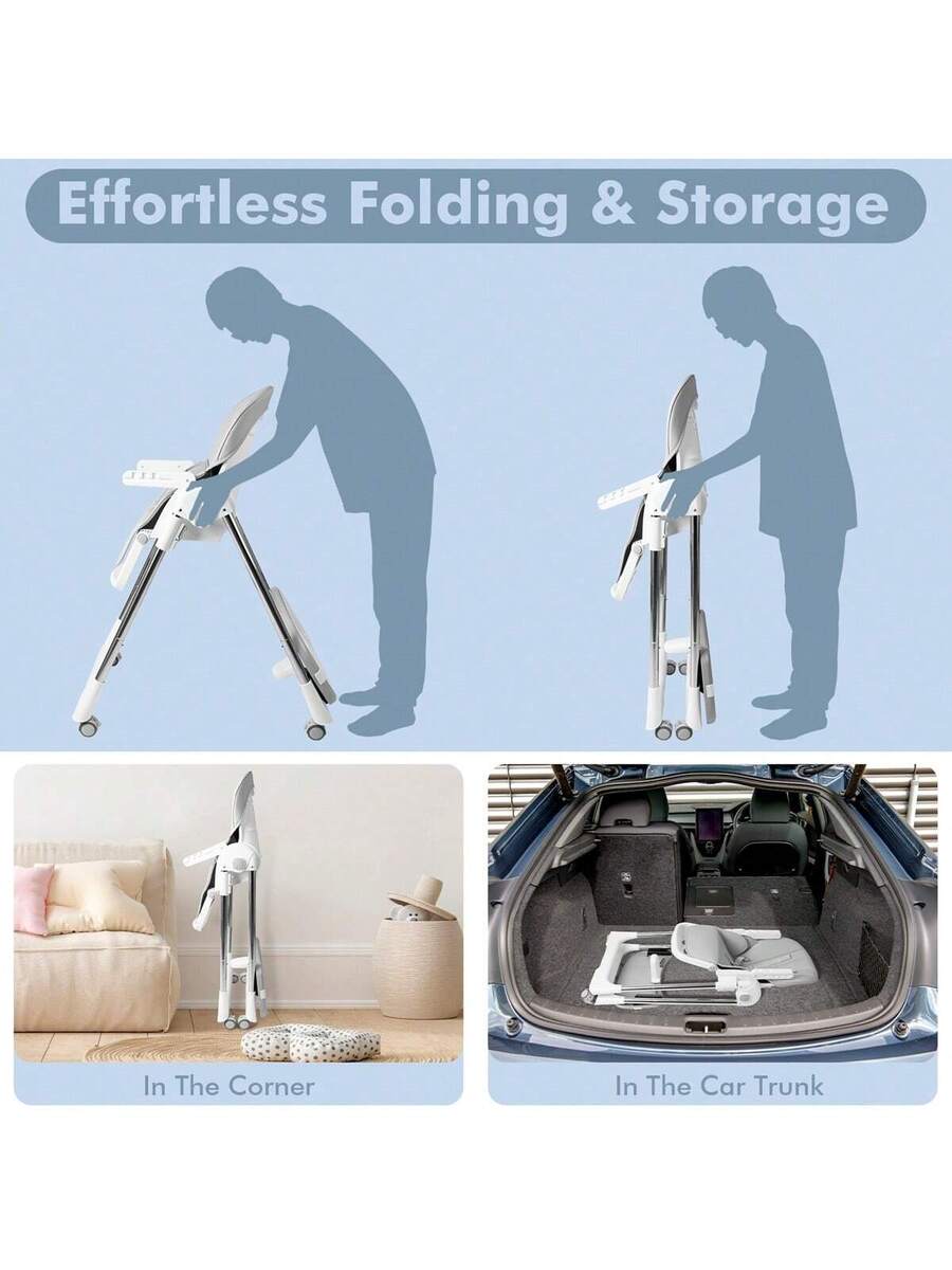 【Praktisch opvouwbaar ontwerp】 Dankzij het opvouwbare ontwerp met één klik kan de kinderstoel eenvoudig worden opgevouwen. Na het opvouwen tot 18x51x112 cm kan hij eenvoudig worden opgeborgen en vervoerd. Ideaal voor gebruik thuis of onderweg.