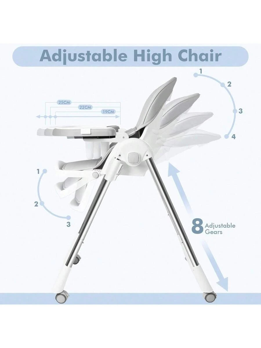 【Vergrendelbare 360° wielen】 De vierwielige kinderstoel kan in elke richting en van links naar rechts rollen en vervolgens worden vergrendeld. Ouders kunnen de stoel gemakkelijk van de keuken naar de eetkamer verplaatsen. Zo kan de baby u zien terwijl u de maaltijden bereidt. U kunt aan het avondeten of de afwas werken terwijl u toezicht houdt.