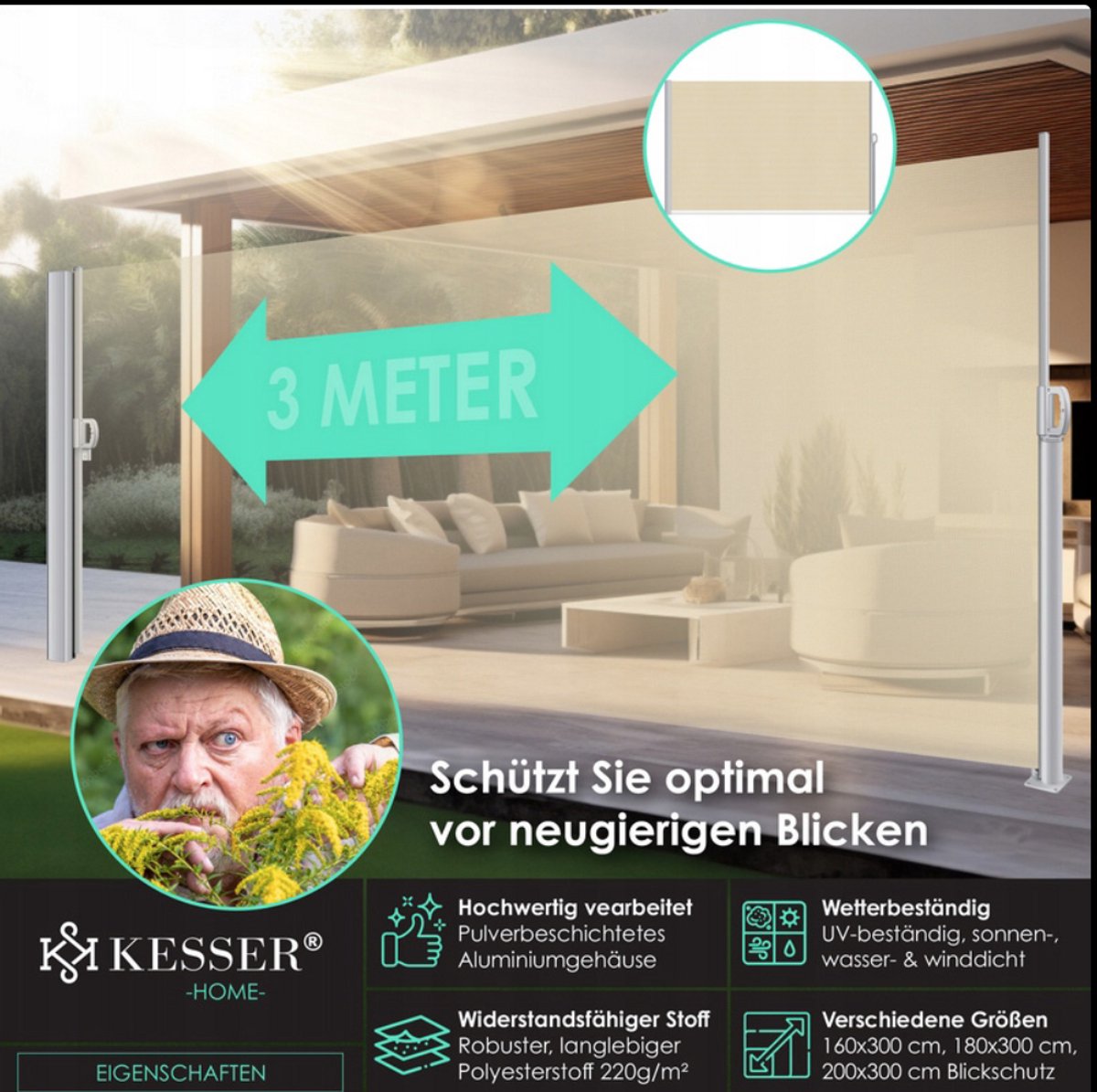 Breedte: Een indrukwekkende breedte van 300 cm, die voldoende bescherming biedt.