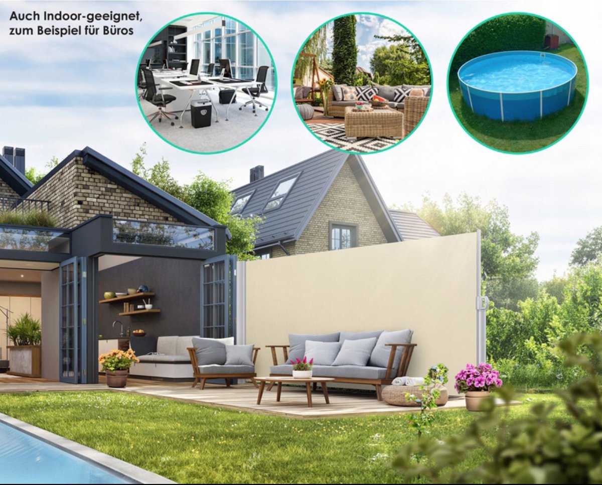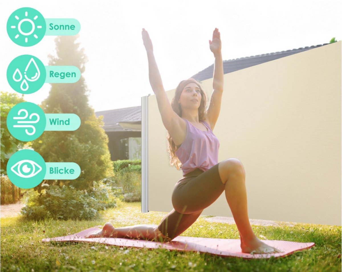 Dit is een handige combinatie van een zonnescherm en een windscherm. Het scherm kan aan de grond bevestigd kan worden. Met dit scherm zorgt u binnen een handomdraai voor een schaduwrijke en windstille plek in de tuin of op het balkon. Daarnaast zorgt het scherm ook voor privacy.